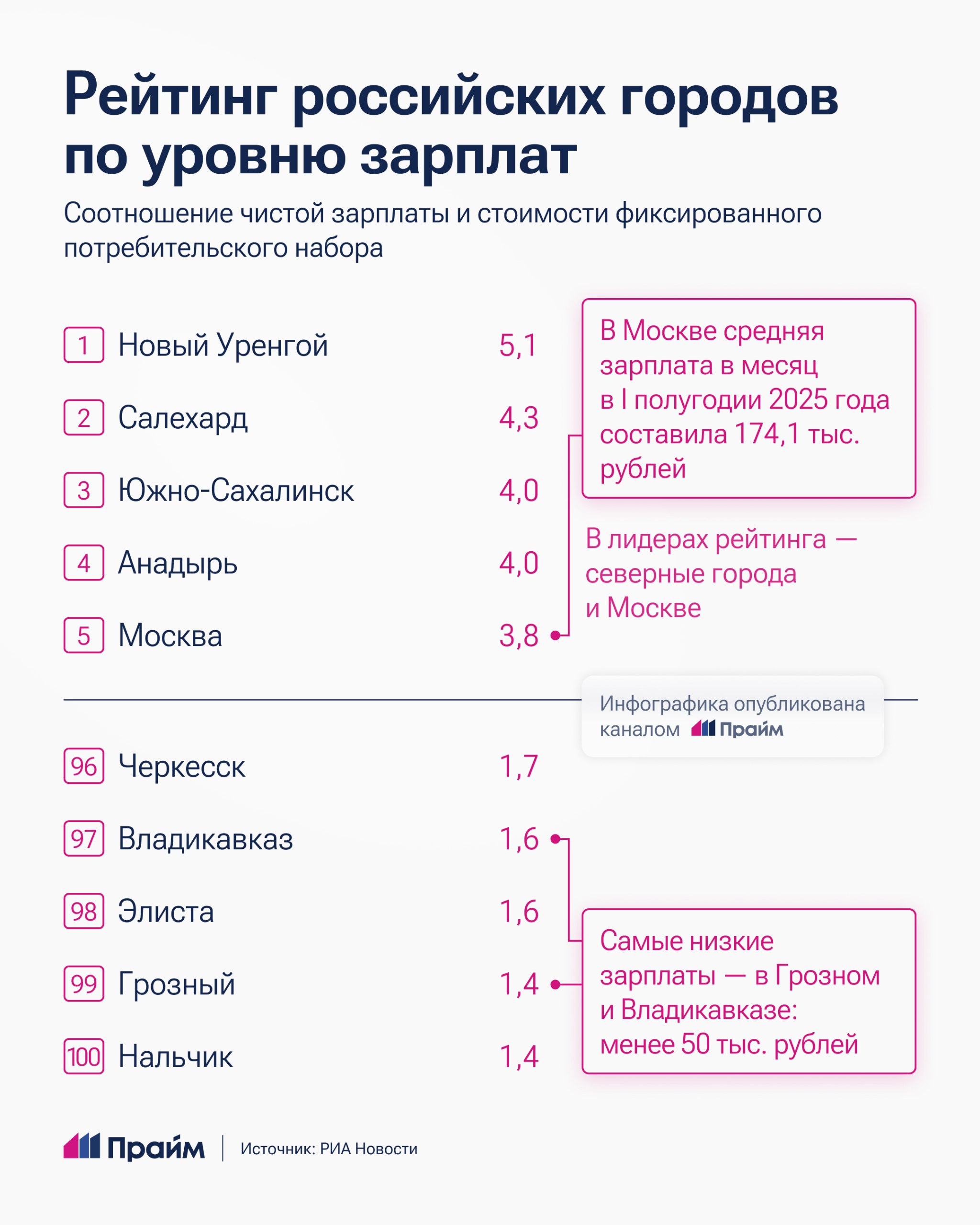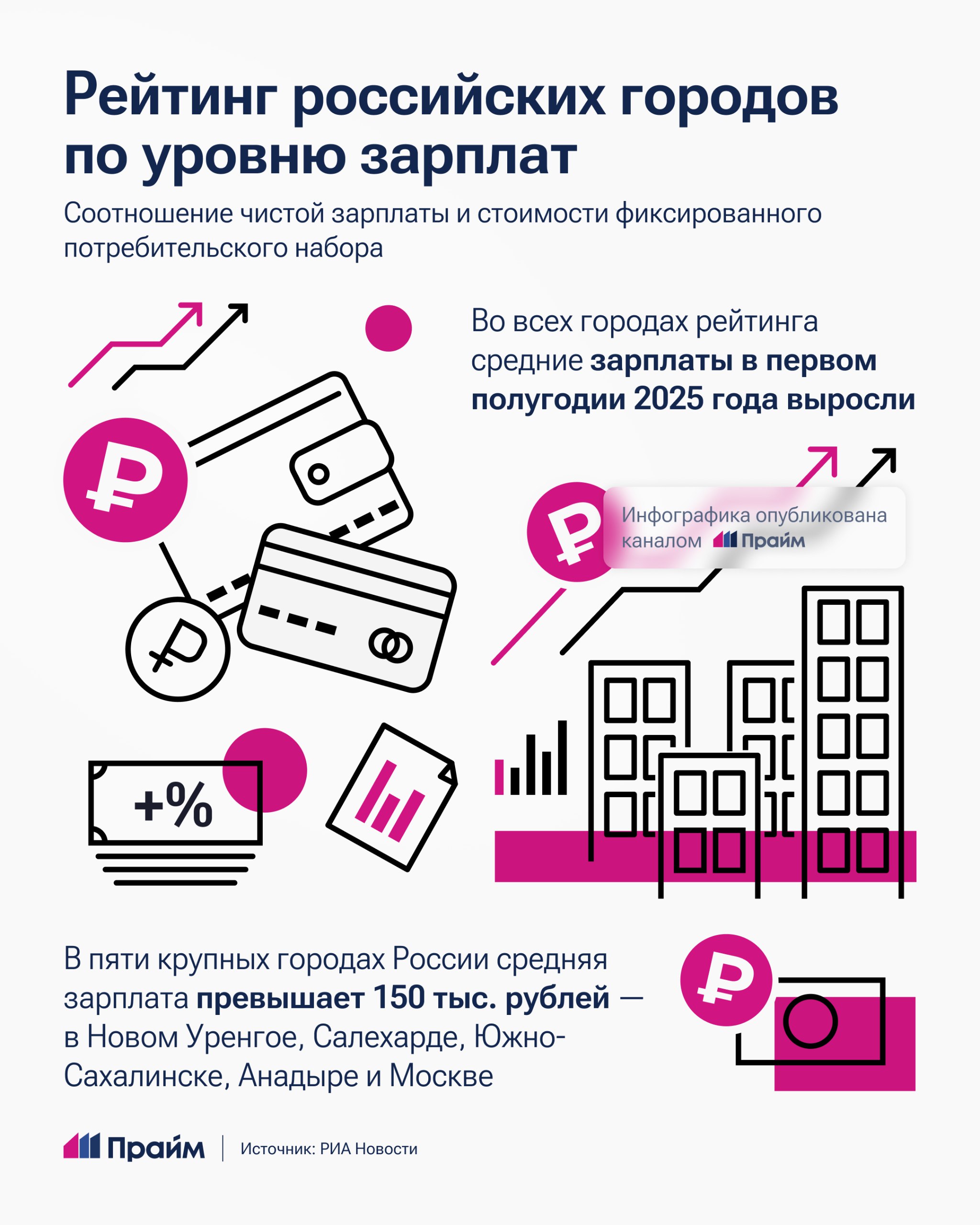 Новый Уренгой, Салехард и Южно-Сахалинск лидируют по уровню зарплат среди российских городов