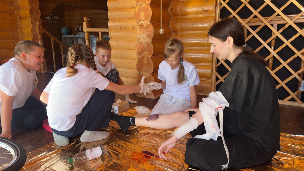 На этапе «Знание основ оказания медицинской помощи» ребята проявили практические навыки: накладывали повязки, использовали перевязочные материалы и подручные средства. В теории – решали билеты, в практике – действовали, как настоящие спасатели.