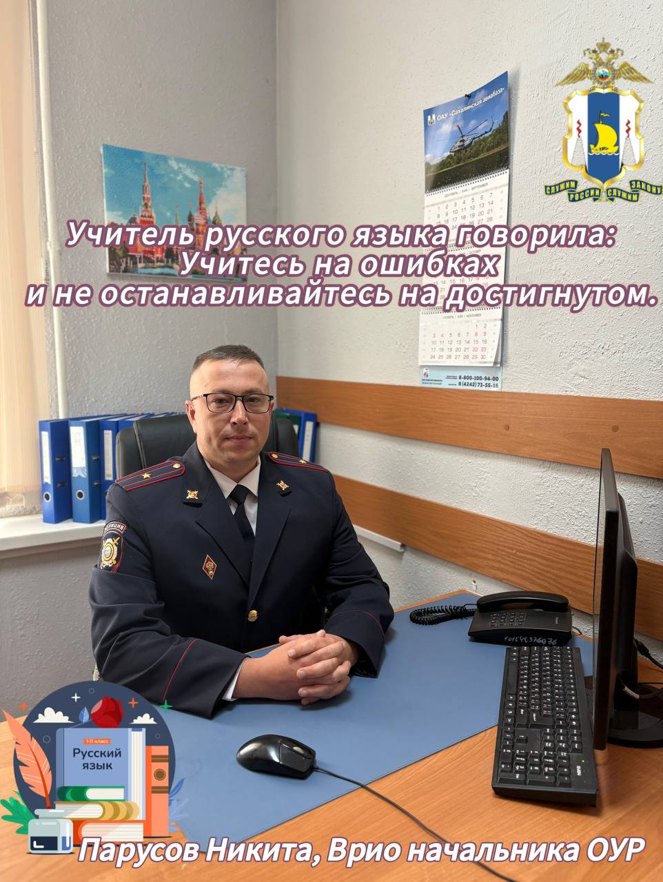 В этот день сотрудники Сахалинской полиции решили вспомнить мудрые слова своих любимых учителей, которые помогают им и в жизни, и на службе.