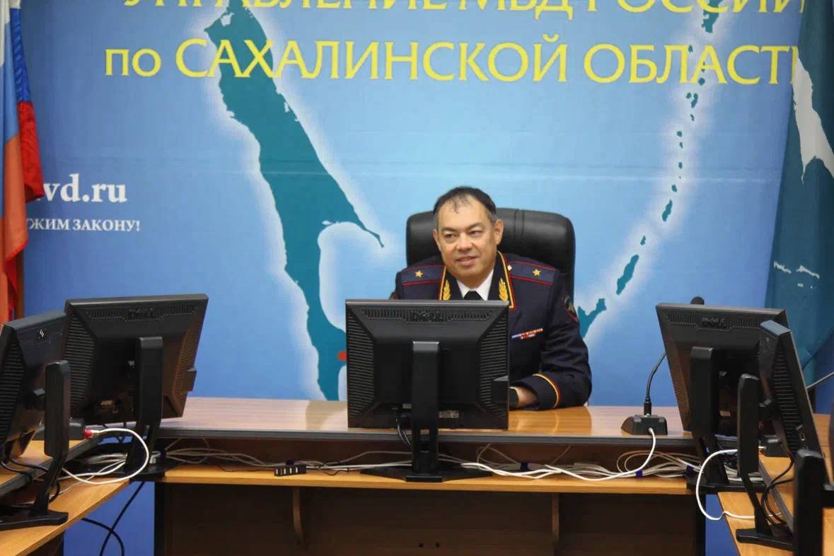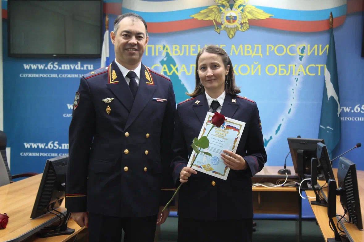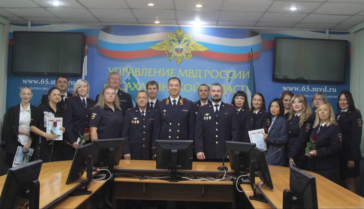 В актовом зале УМВД России по Сахалинской области в торжественной обстановке заместитель начальника УМВД России по Сахалинской области генерал-майор внутренней службы Рахматуллин Артур Фаритович наградил почетными грамотами и благодарностями наиболее отличившихся сотрудников подразделения и пожелал крепкого здоровья, счастья, благополучия и новых успехов в службе.