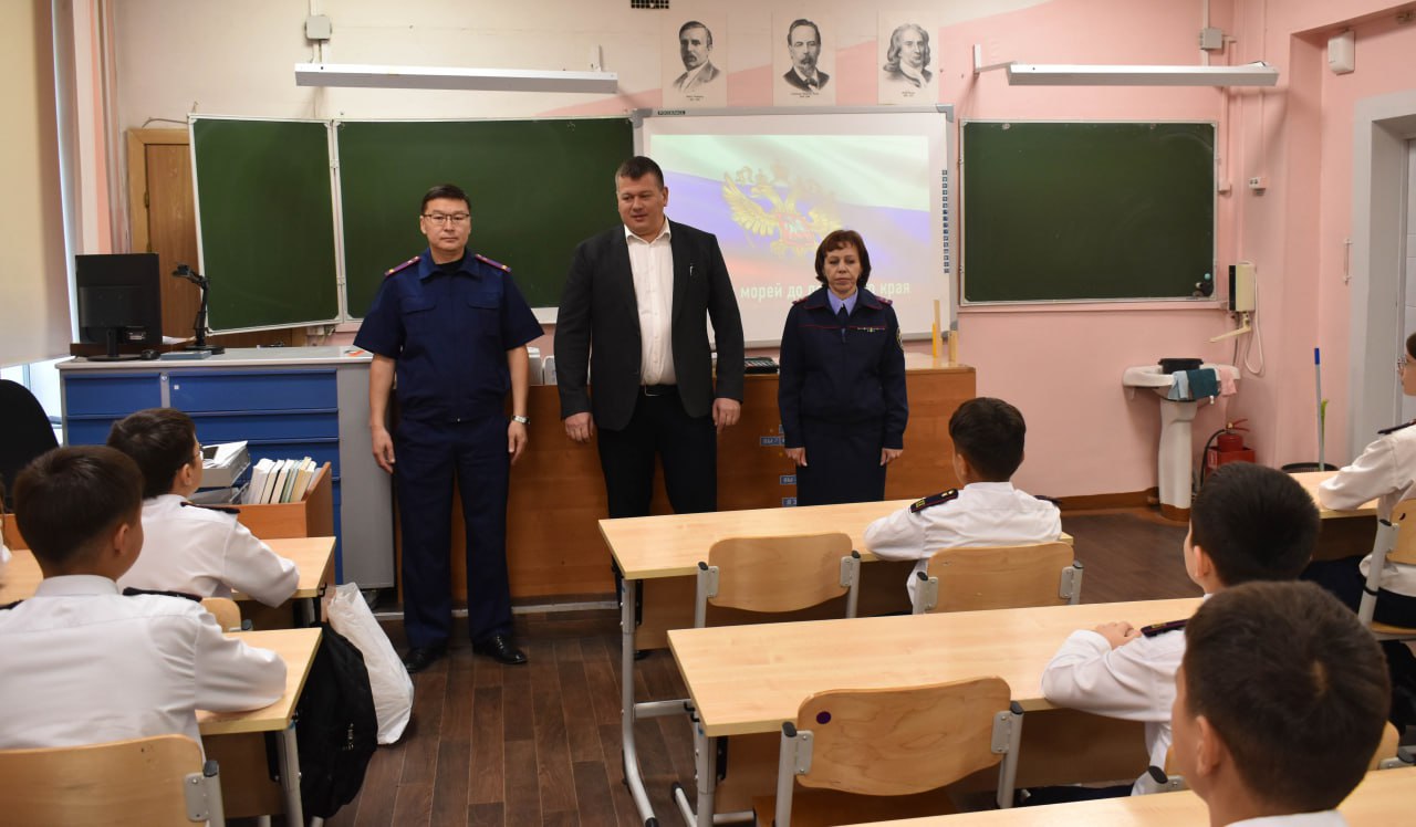 Сотрудники следственного управления Следственного комитета Российской Федерации по Сахалинской области вместе с ветеранами следствия и представителями Сахалинского следственного отдела на транспорте Восточного межрегионального СУТ СК России организовали и провели тематический урок мужества для воспитанников кадетского класса.