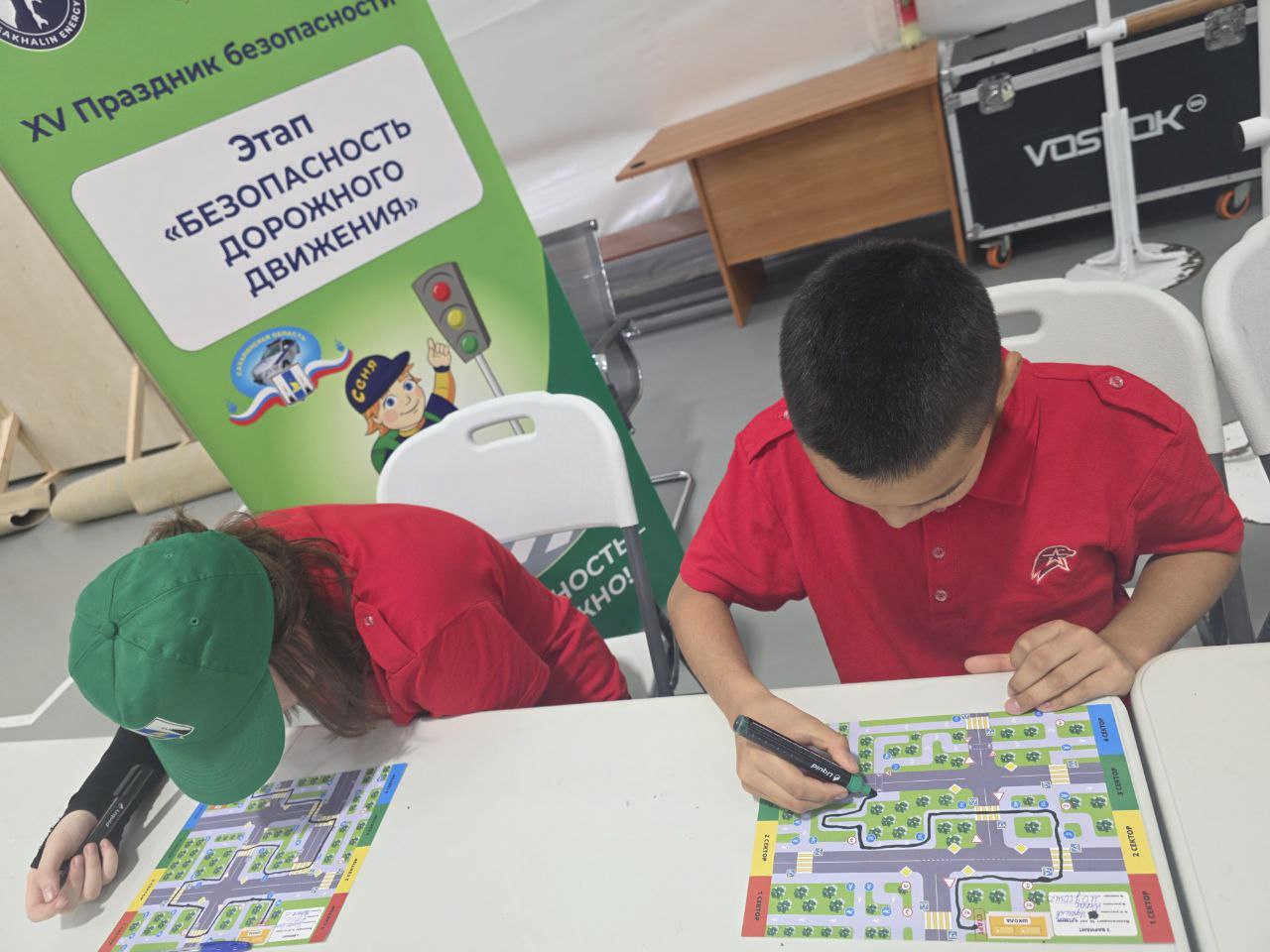 Традиционно, одна из площадок на празднике была посвящена безопасности дорожного движения. На этом этапе сотрудники Госавтоинспекции проверили у школьников умение ориентироваться в дорожных ситуациях. Участникам были предложены карточки с маршрутом движения от школы до дома на велосипеде. Ребята составляли безопасный путь, учитывая дорожные знаки и опасные участки дороги.