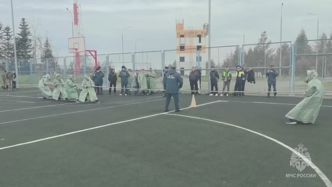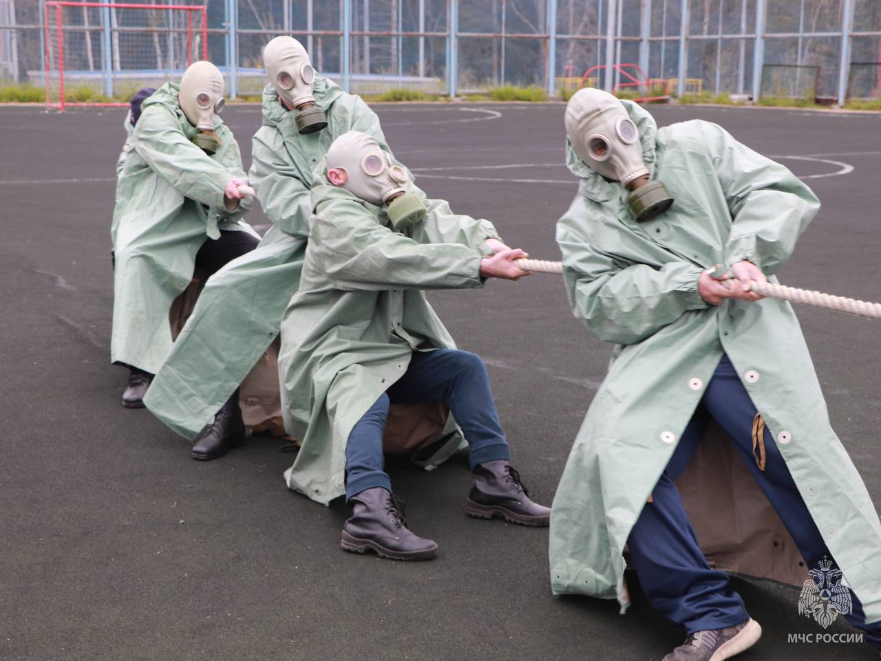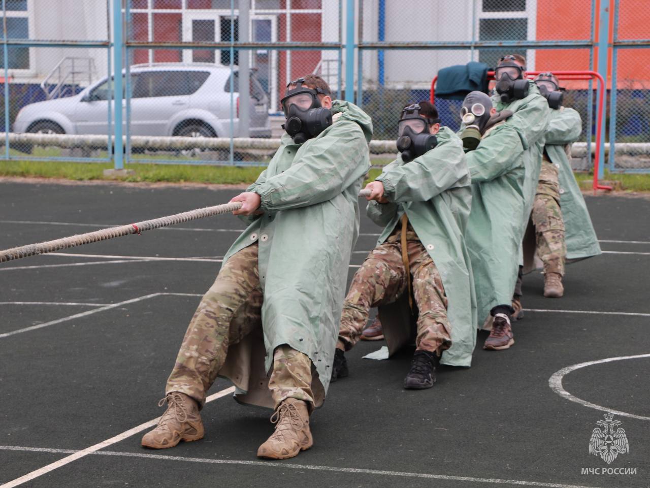 Участникам предстояло надеть костюм химической защиты, противогаз, выстроиться друг за другом по цепочке и перетянуть канат на свою сторону. Борьба на поле разыгралась нешуточная. Участники показали не только свою силу и выносливость, но и умение работать в команде.