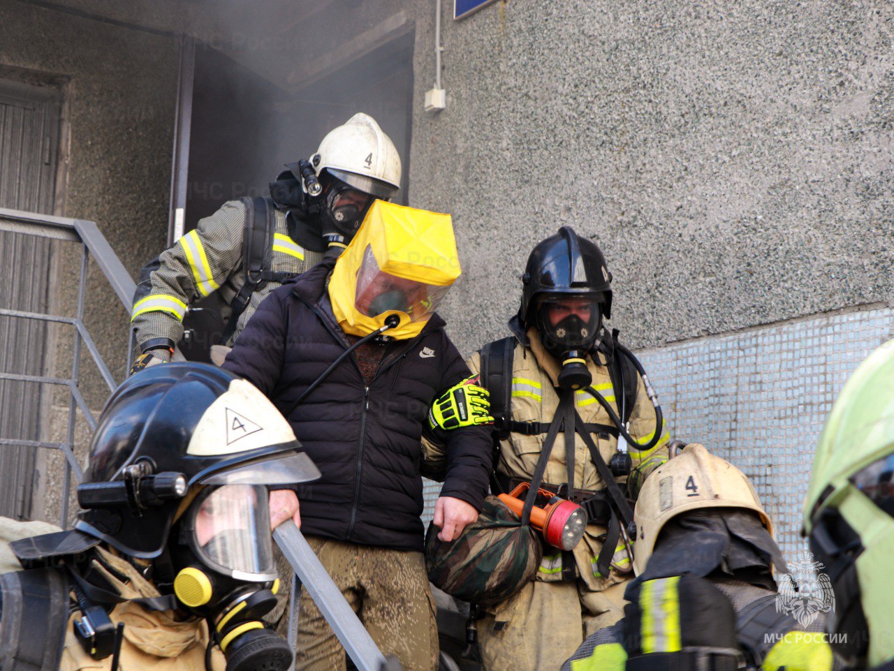 Сотрудники МЧС России провели разведку, нашли и эвакуировали условных пострадавших, передали их медикам и ликвидировали очаг.