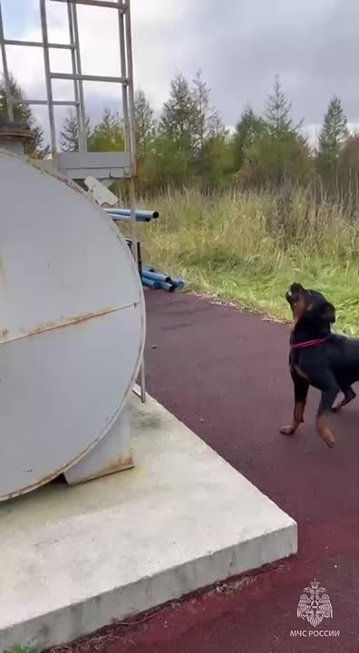 На базе поисково-спасательного отряда прошли еженедельные тренировки служебных собак