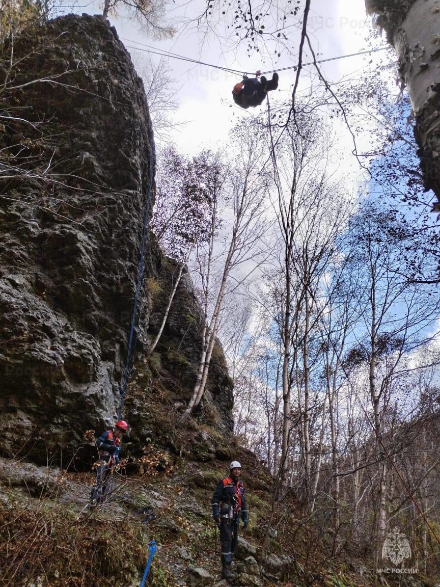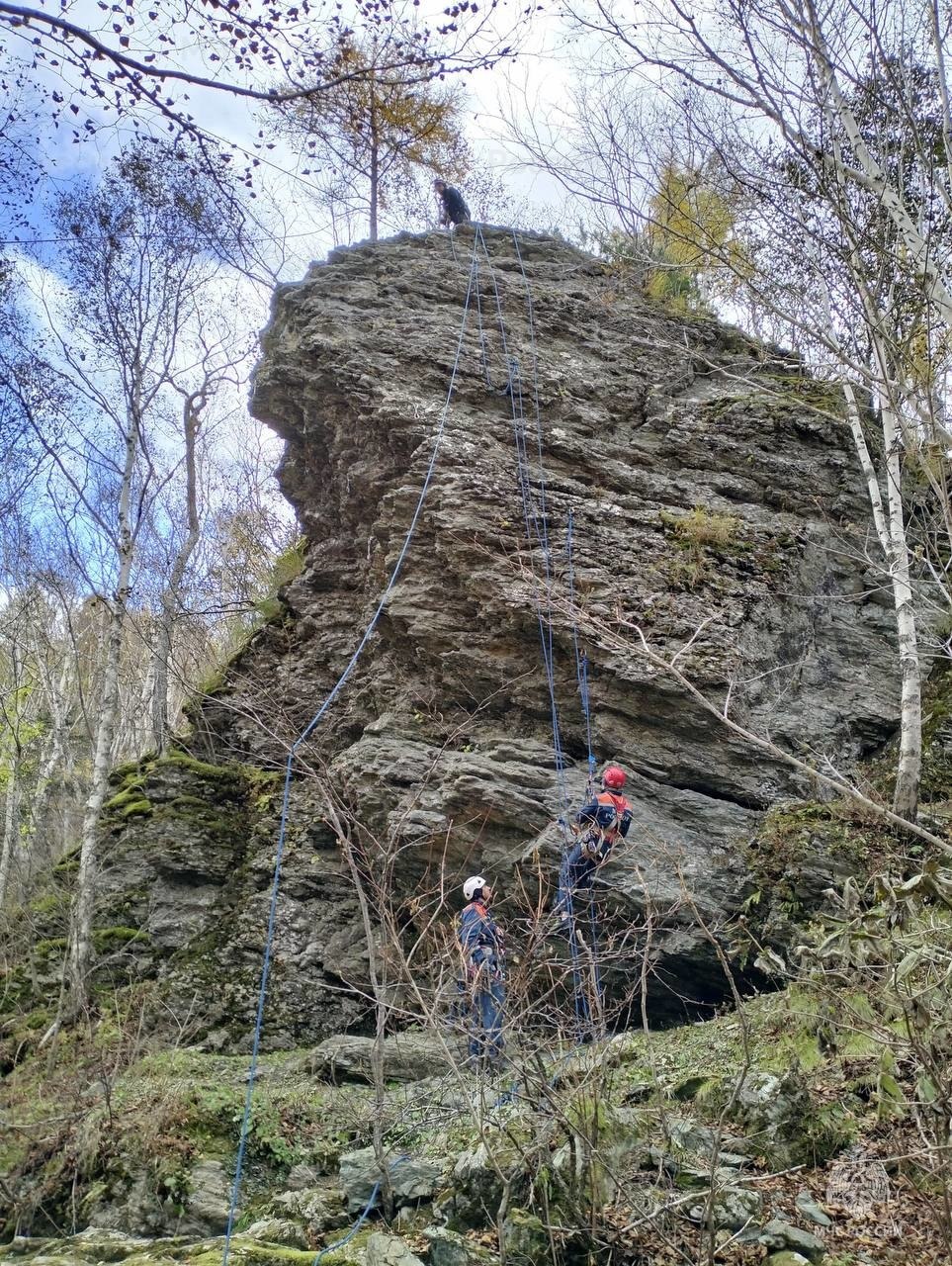 Сотрудники поисково-спасательного отряда имени В.А. Полякова провели двухдневные учебно-тренировочные сборы на скальном останце в верховьях реки Хомутовка.