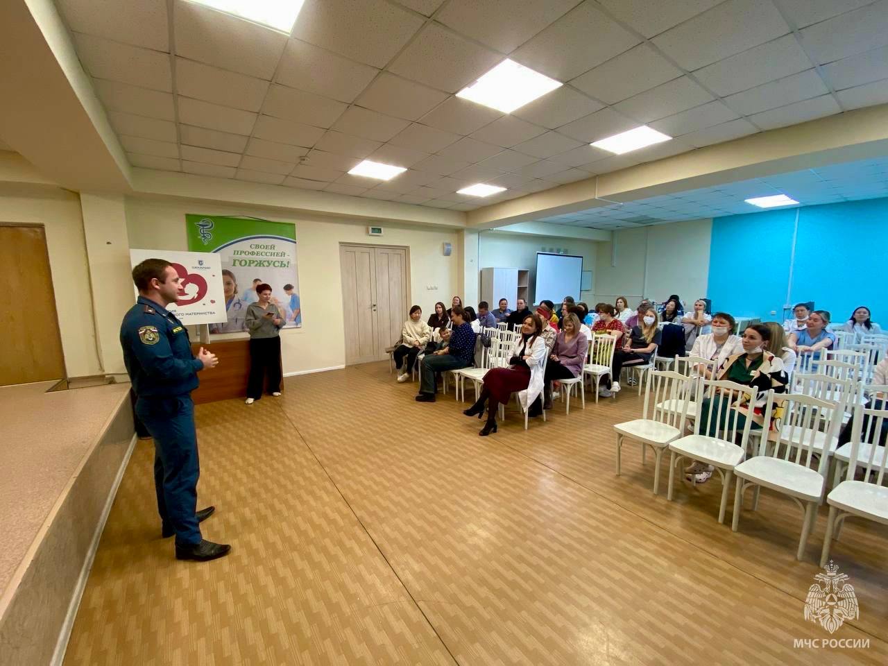 В ходе беседы специалисты МЧС России рассказали присутствующим о мерах пожарной безопасности на объектах здравоохранения и напомнили алгоритм эвакуации при возгорании. Участники также потренировались в использовании средств индивидуальной защиты органов дыхания.
