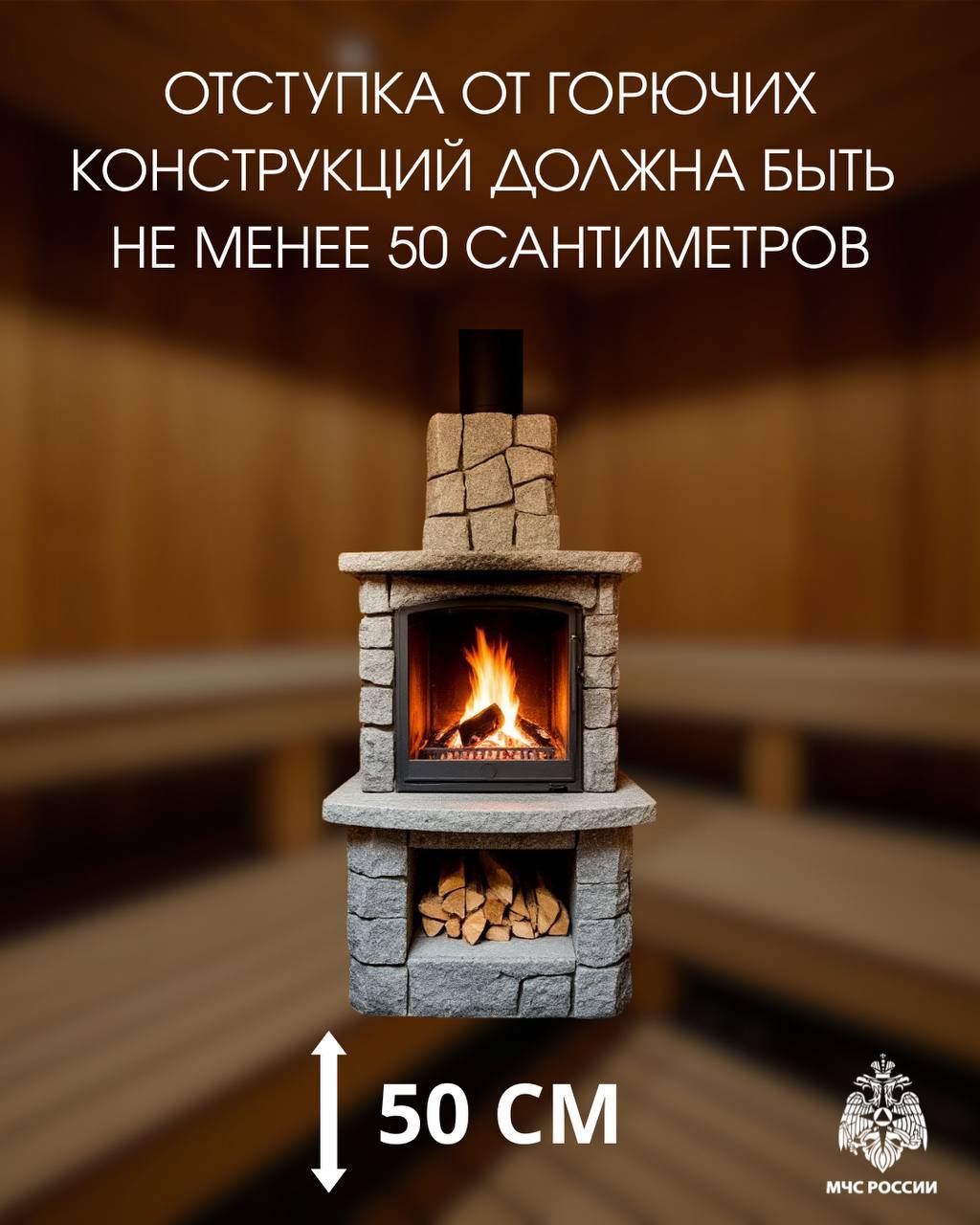 Печи должны иметь противопожарные разделки (отступки) от горючих конструкций, а также предтопочный лист размером 50х70 см.