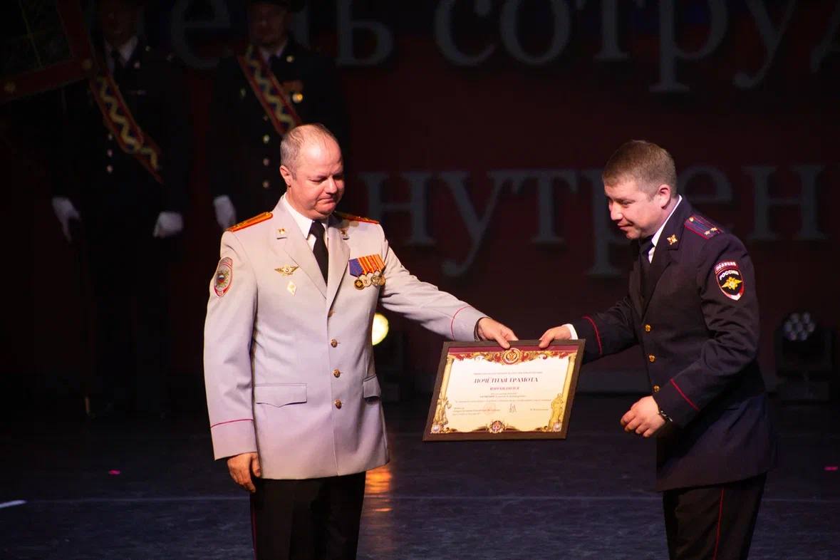 Вторая часть мероприятия была посвящена профессиональному празднику сотрудников органов внутренних дел. Со сцены звучали слова благодарности за их нелегкий труд, самоотверженность и верность долгу.