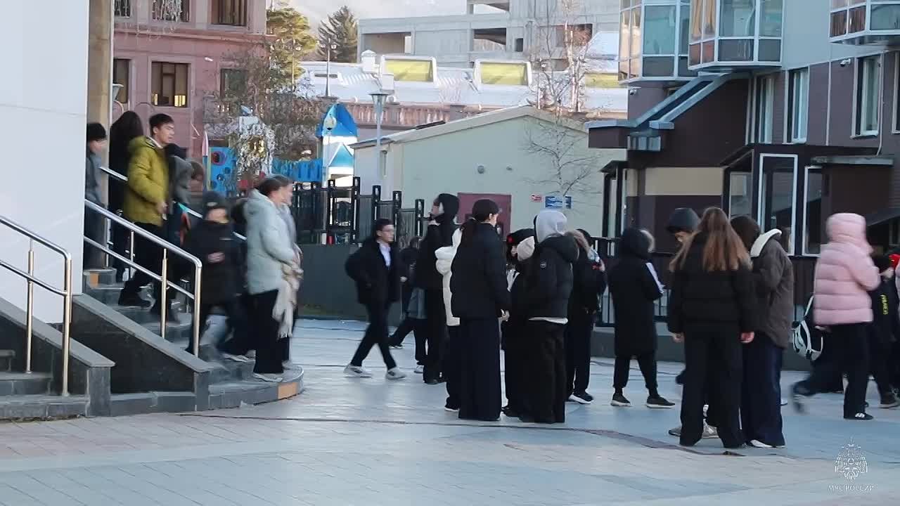 В ЮжноСахалинске прошли пожарнотактические учения на базе третьей гимназии. По сценарию, возгорание возникло в актовом зале на втором этаже.