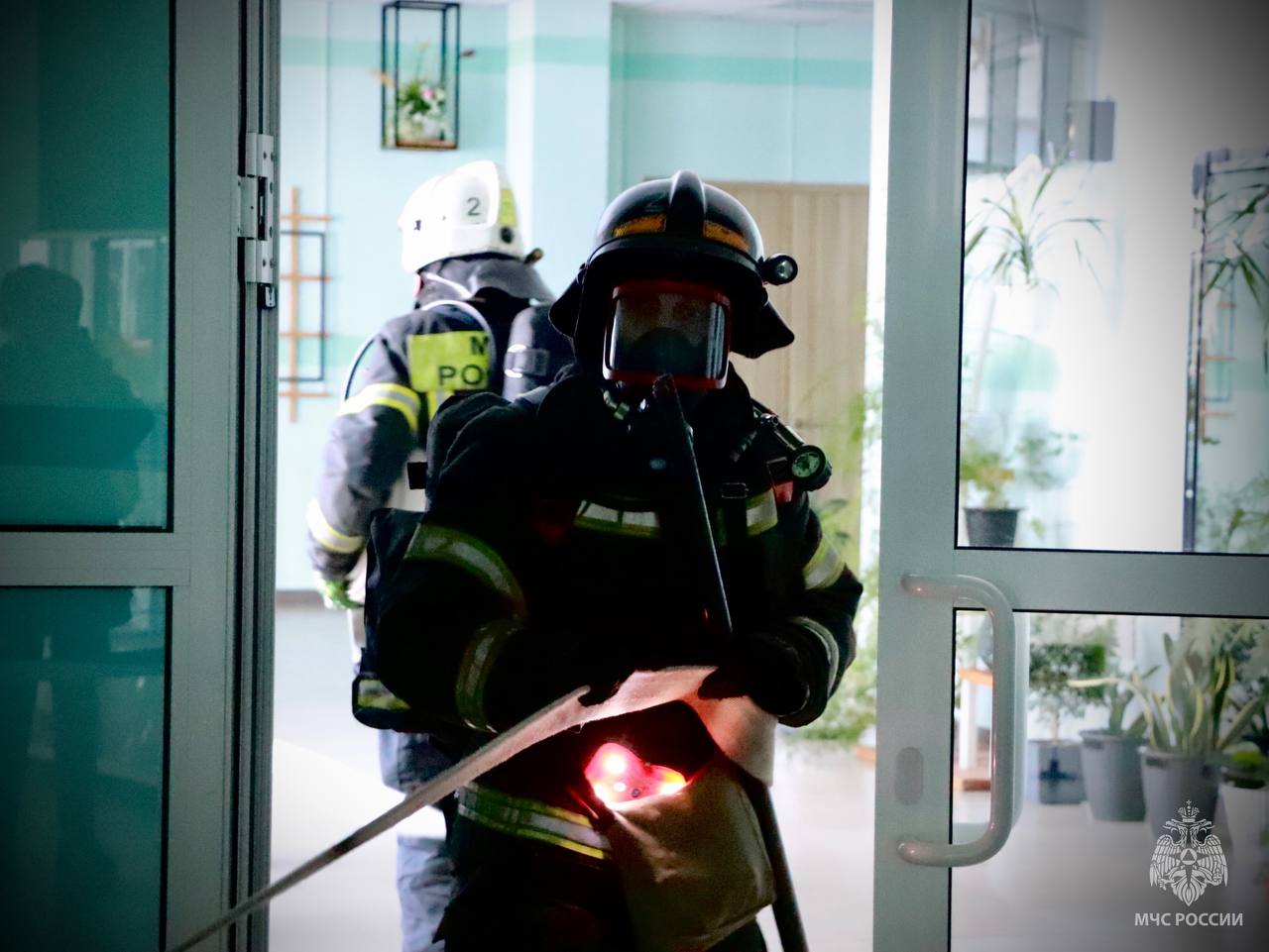 Сотрудники МЧС России отработали действия при пожаре в третьей гимназии