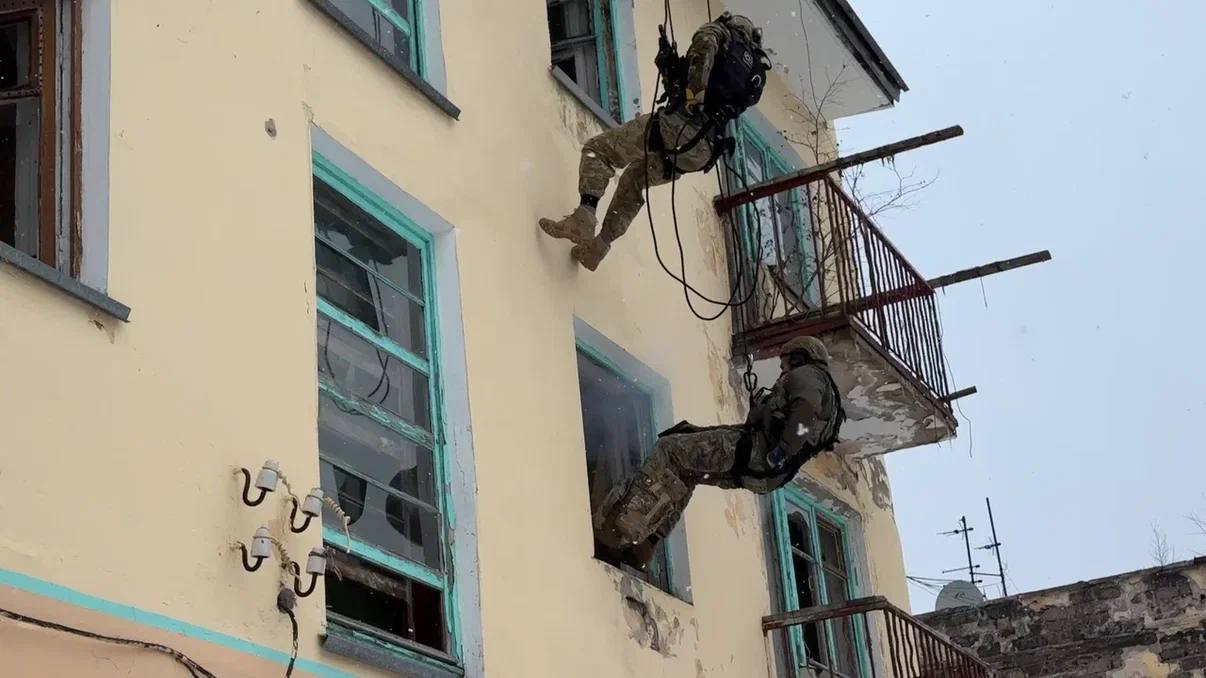 Следующим этапом проведена тренировка контртеррористической операции. По замыслу, двое злоумышленников укрылись от преследования в доме, удаленном от областного центра. Отработка боевых действий осуществлена в нежилом помещении в условиях, максимально приближенных к реальности. В ходе боеконтакта штурмовой группой условные террористы нейтрализованы.