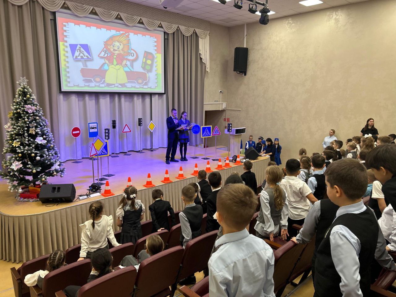 Сегодня в стенах гимназии царила особая атмосфера — праздничная и по-настоящему познавательная. 144 первоклассника стали участниками большого, яркого события – посвящения в пешеходы.