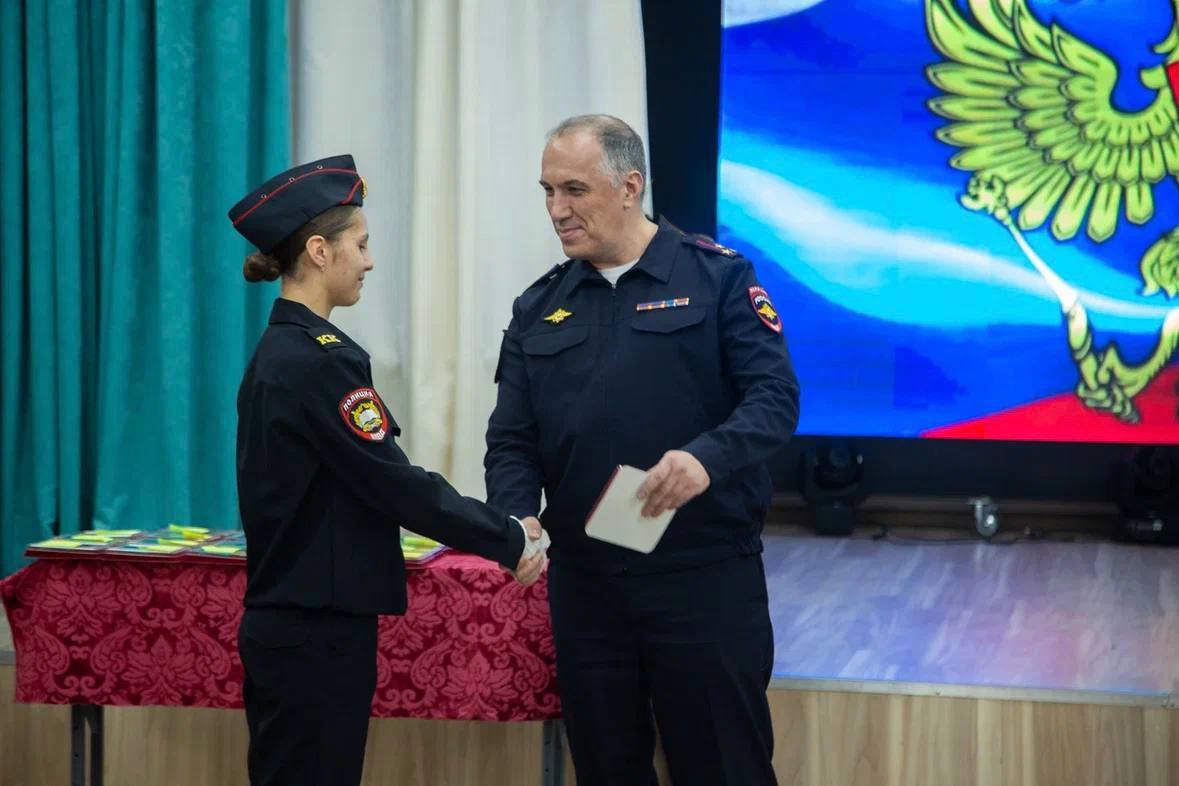 Центральными и самым волнующим моментом церемонии стало личное участие начальника УМВД России по Сахалинской области полковника полиции Владимира Михайловича Арбузова. Именно он, как высшее должностное лицо островной полиции, обратился со словами напутствия к молодому поколению и вручил кадетам заслуженные награды.