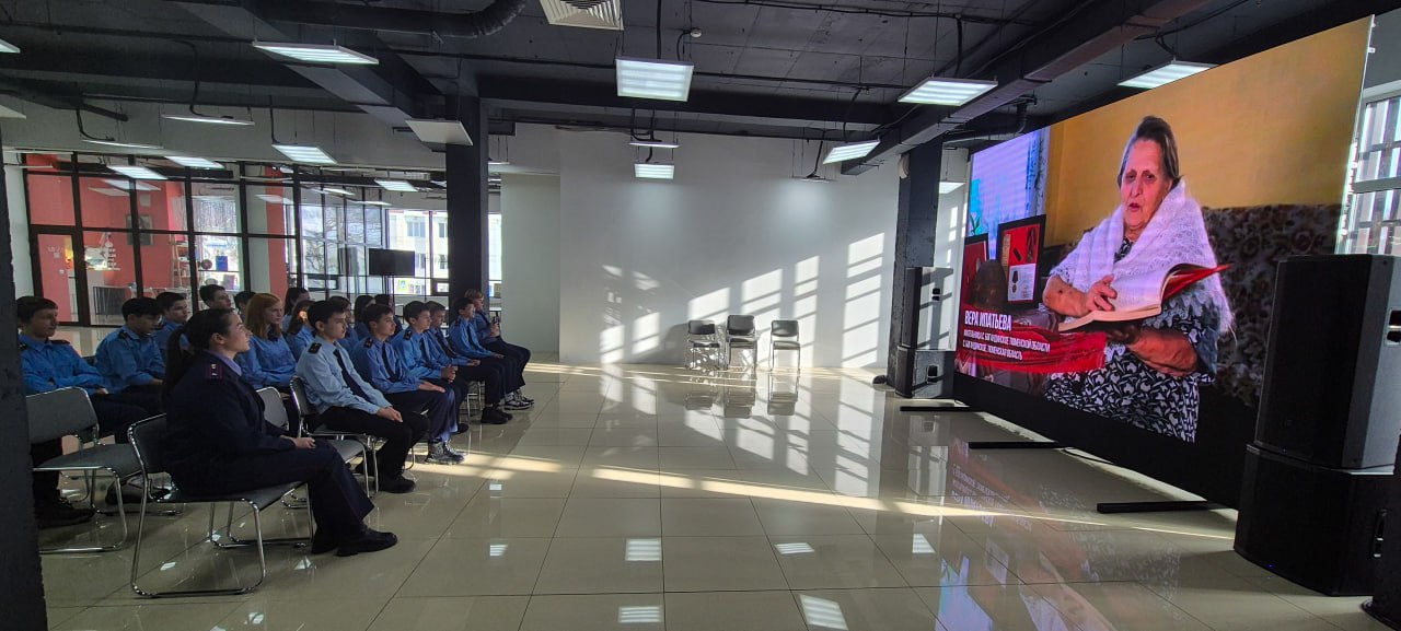 Сотрудник следственного управления СК России по Сахалинской области в рамках учебно-патриотических занятий организовала для воспитанников кадетского класса просмотр документального фильма «Неизвестный солдат»