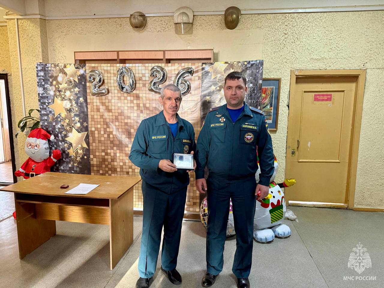 Особое признание в этот день получил начальник отдельного поста 9-й пожарно-спасательной части Юрий Лобанов. Вадим Широкий вручил ему именные наручные часы Министра МЧС России Александра Куренкова.