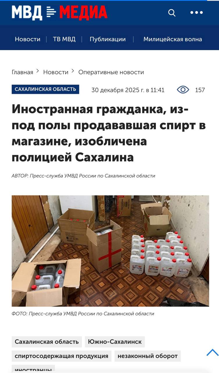 В ходе дальнейших проверочных действий и обыска по месту ведения противоправной деятельности сотрудниками полиции изъято еще порядка 1180 литров жидкости. Проведенной экспертизой Экспертно-криминалистического центра УМВД было установлено, что изъятая жидкость является этиловым спиртом. Таким образом, общий объем незаконного оборота составил свыше 1270 литров. Продукция, находящаяся в незаконном обороте изъята и помещена на ответственное хранение. Все подробности здесь Материал на 1234 https://mvdmedia.ru/news/operativnye-novosti/inostrannaya-grazhdanka-iz-pod-poly-prodavavshaya-spirt-v-magazine-izoblichena-politsiey-sakhalina/