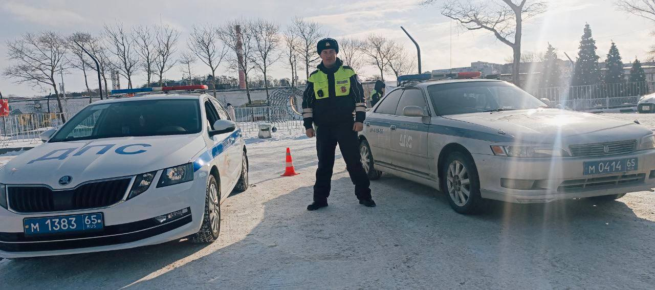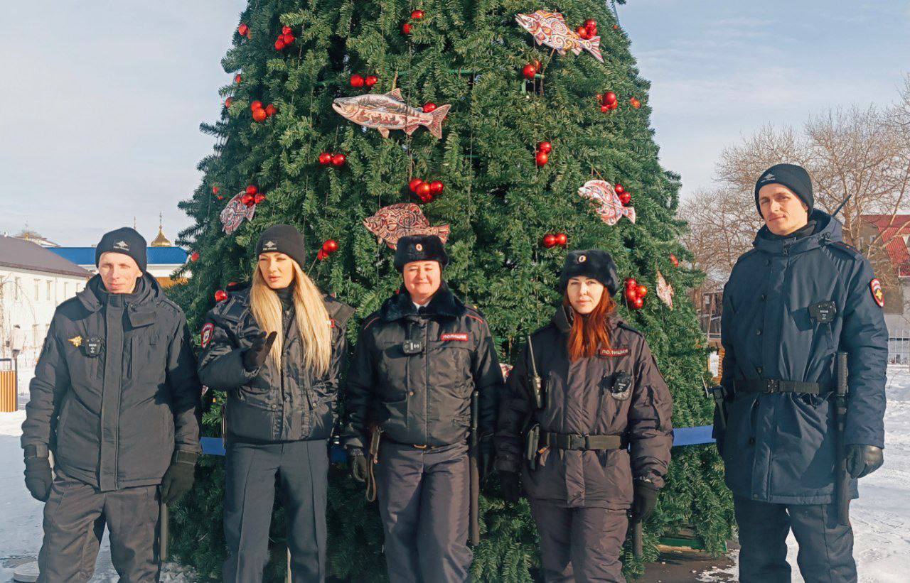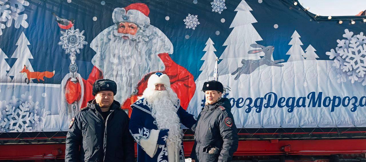 Волшебство Рождества и безопасности вместе с полицией. В Корсакове проходит праздничная встреча у «Рыбной Елки» с Поездом Деда Мороза