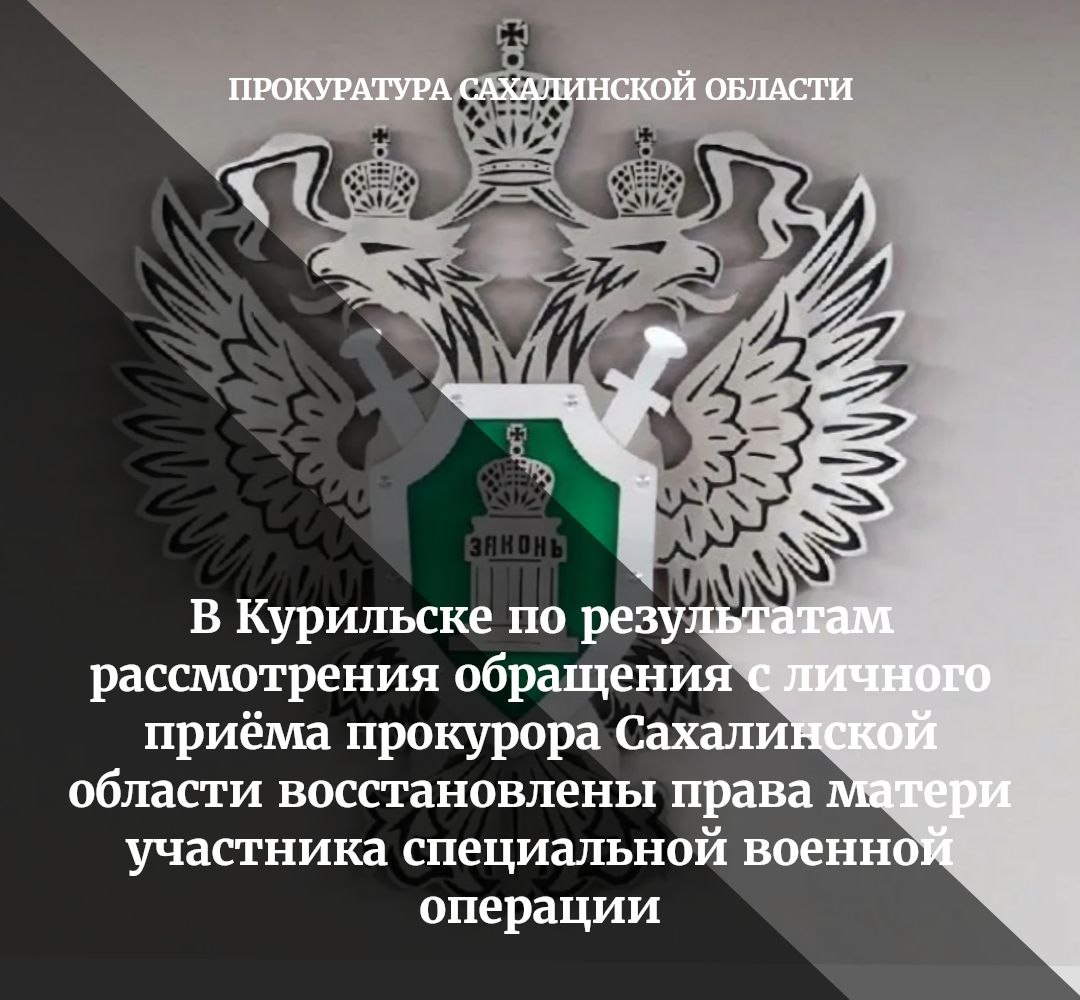 23 декабря 2025 года на личный приём к прокурору Сахалинской области обратилась местная жительница - мать участника специальной военной операции по вопросу перерасчета платы за коммунальные услуги.