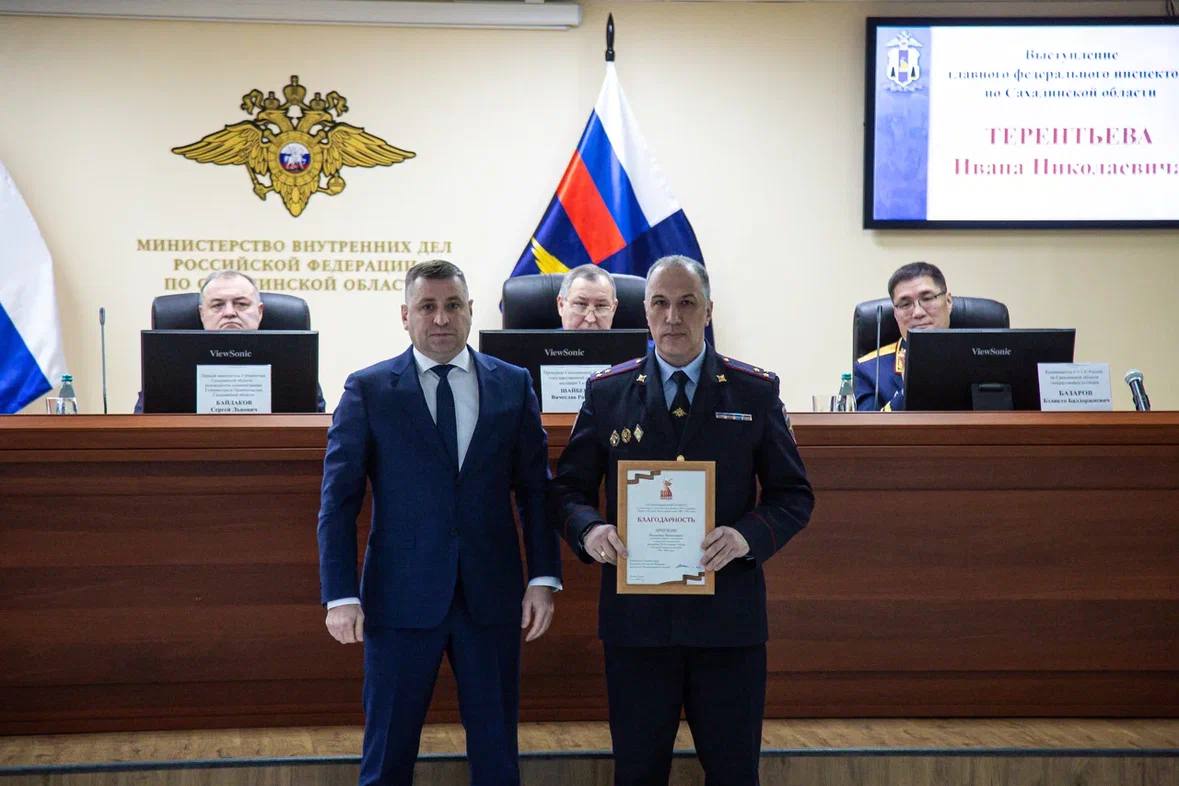 Обращаясь к личному составу, Главный федеральный инспектор по Сахалинской области Иван Терентьев отметил, что