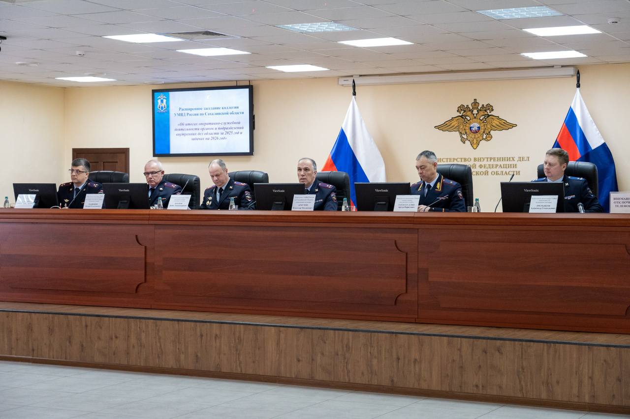 В УМВД России по Сахалинской области состоялось расширенное заседание Коллегии, посвященное итогам оперативно-служебной деятельности органов и подразделений внутренних дел области за 2025 год и задачам на 2026 год