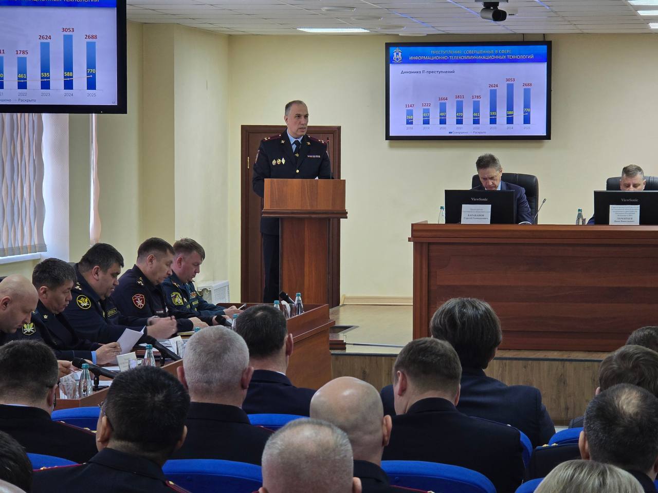 Характеризуя оперативную обстановку, Владимир Арбузов сообщил о снижении общего количества зарегистрированных преступлений на 6,7%, а также о сокращении числа тяжких преступлений против личности. Однако показатель уровня преступности в расчете на 10 тысяч населения в области остается выше среднероссийского и среднеокружного. Существенным негативным фактором продолжает оставаться IT-преступность, которая составляет каждое третье преступление. Хотя общий массив таких преступлений удалось снизить на 12%, число дистанционных мошенничеств незначительно выросло, а общий ущерб от них исчисляется сотнями миллионов рублей. При этом по приросту раскрываемости IT-преступлений Сахалинское управление занимает 9-е место в стране, что свидетельствует о прилагаемых значительных усилиях.