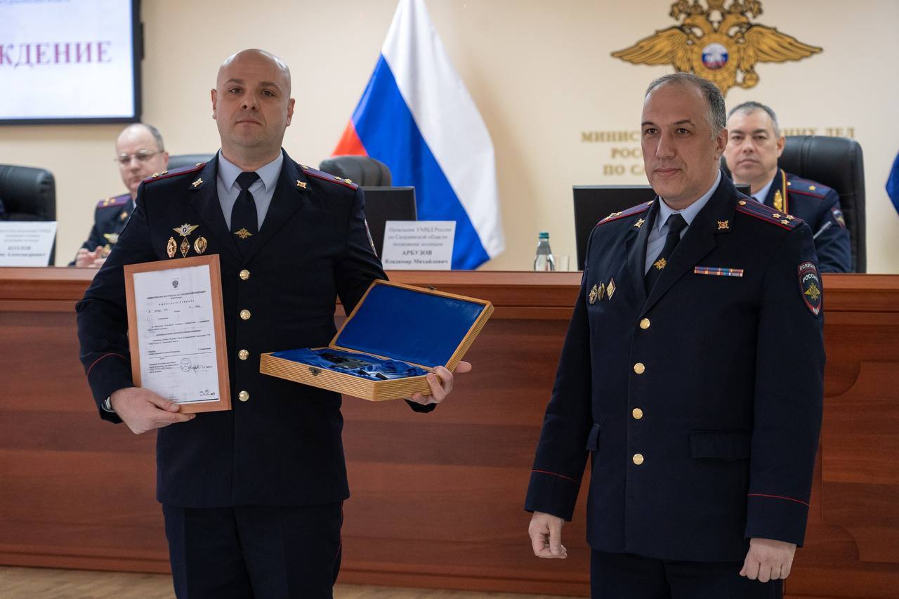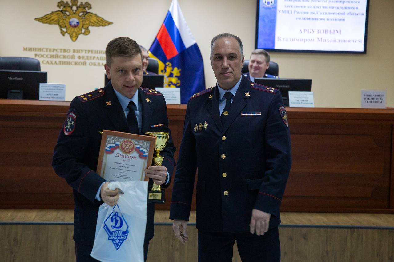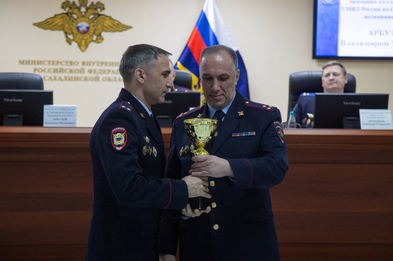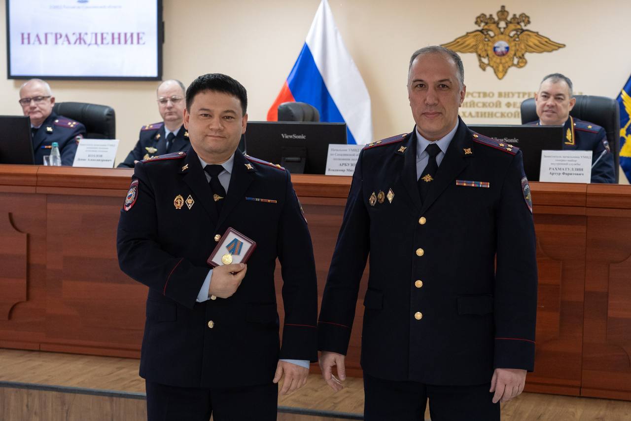 Во второй, части заседания были отмечены сотрудники, отличившиеся в служебной деятельности. Наградным оружием пистолетом Лебедева был награжден начальник Управления уголовного розыска полковник полиции Павел Владимирович Буданов. Заместителю начальника следственного управления МВД Южно-Сахалинск Елене Винеровне Незамеевой присвоено очередное специальное звание полковника юстиции. Медалью За боевое содружество награжден заместитель начальника управления начальник отдела по противодействию IT-преступлениям полковник полиции Андрей Гейнерович Ким. Почетной грамотой МВД России были отмечены еще шестеро сотрудников различных подразделений УМВД, включая руководящий, оперативный состав и специалистов тыловых служб.