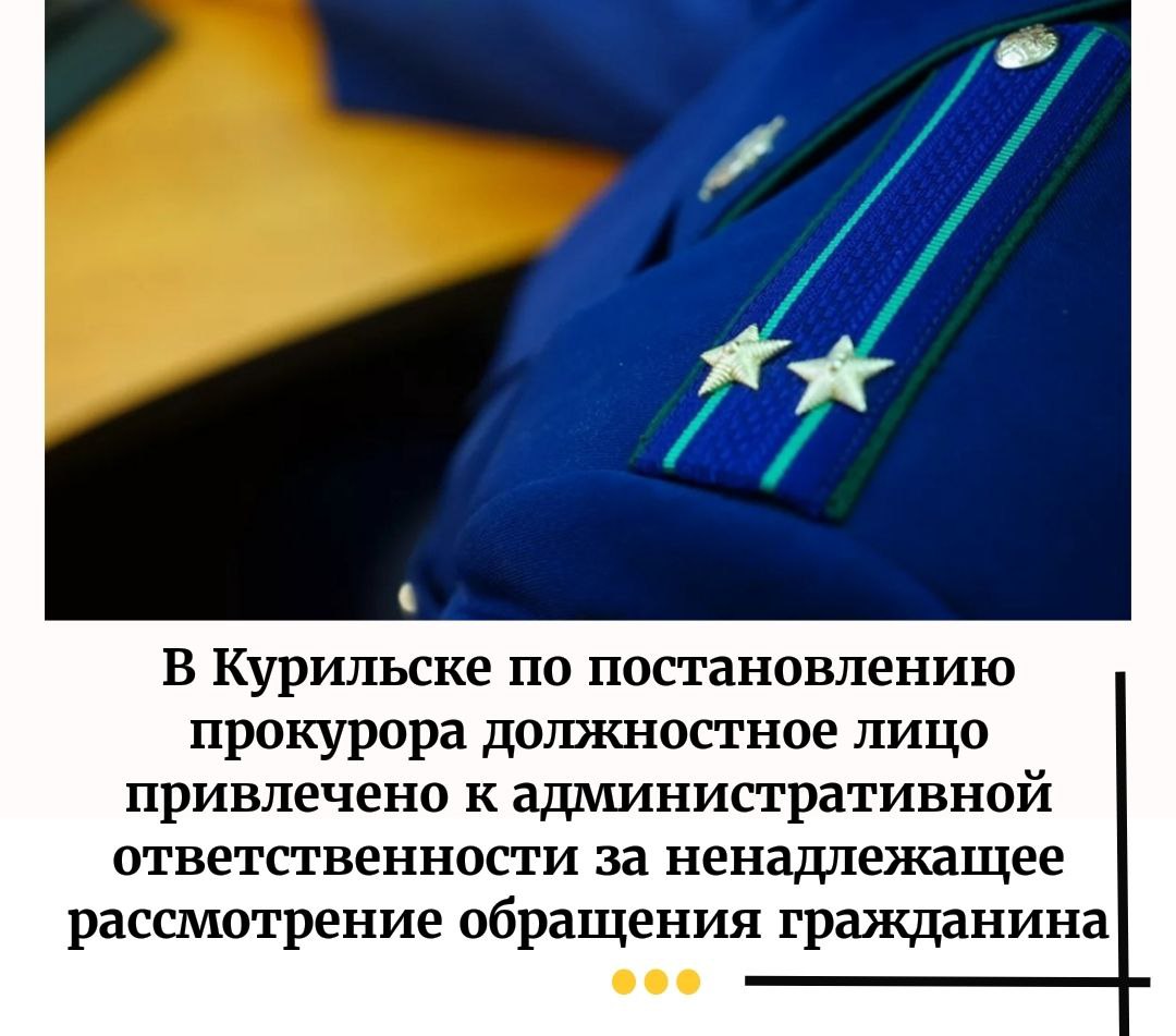 Прокуратурой Курильского района проведена проверка по обращению местного жителя о неполучении ответа на обращение, направленное для рассмотрения в Департамент по управлению муниципальным имуществом Курильского муниципального округа Сахалинской области.