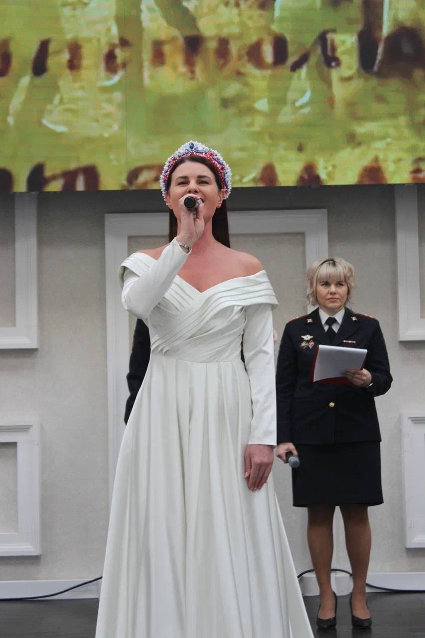 Торжество открылось выносом Знамени УМВД России по Сахалинской области. Под звуки фанфар знаменная группа внесла символ ведомства, который оставался на сцене на протяжении всего мероприятия. Гимн Российской Федерации в исполнении солистки Сахалинской филармонии https://t.me/s/sakhfilarmonia Ярославны Калашниковой задал высокий, торжественный настрой всему происходящему в зале.