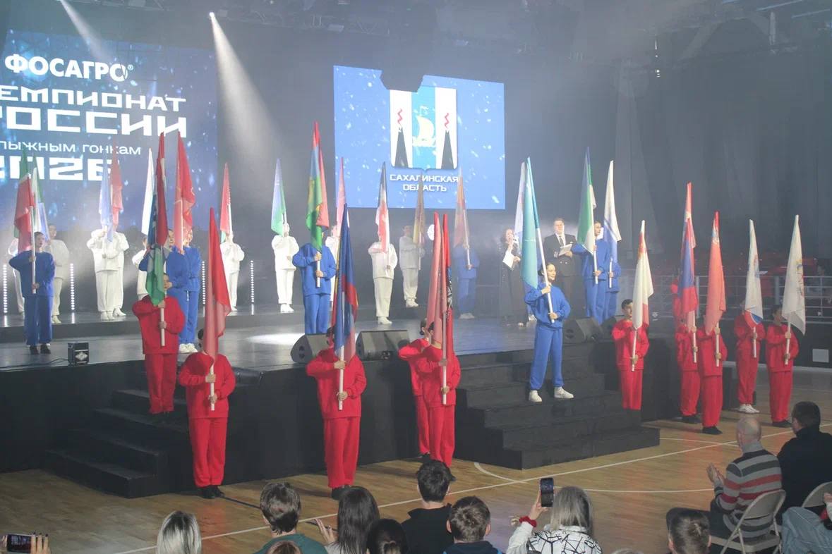 В Центре единоборств Сахалинской области состоялась торжественная церемония открытия Чемпионата России по лыжным гонкам. Масштабное спортивное событие собрало свыше 300 участников из различных уголков России и мира. На сахалинскую землю приехали представители Республики Беларусь, Китайской Народной Республики, сборная Республики Татарстан и многих других регионов нашей Великой России.