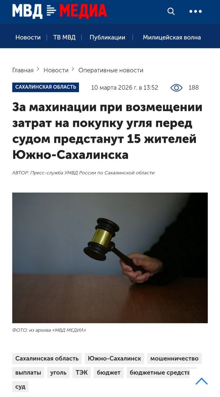 Следственным управлением УМВД России «Южно-Сахалинск» завершено расследование уголовных дел в отношении 15 местных жителей. Они обвиняются в мошенничестве при возмещении расходов на приобретение угля.