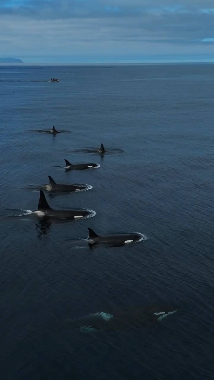 Стаю из 13 косаток запечатлели в районе Курильских островов