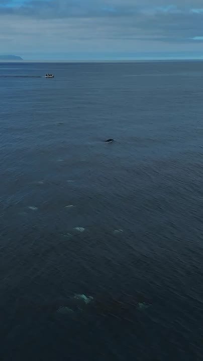 По словам наблюдателей, стая насчитывала не менее 13 особей. Гиганты не спешили, величественно разрезая воду фонтанчиками своих дыханий, периодически останавливались для отдыха и даже подплыли ближе к берегу, обойдя экспедиционное судно.