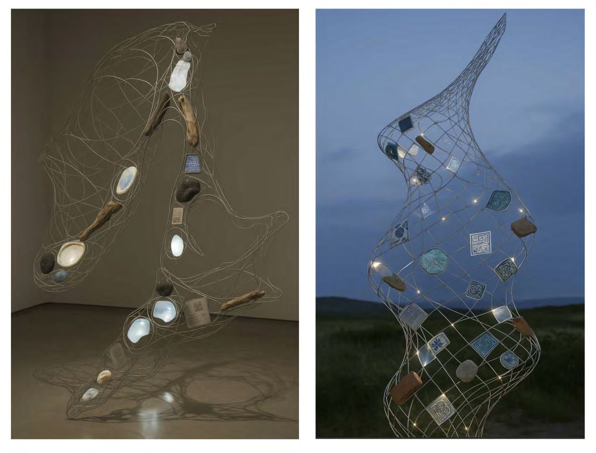 Ее проект под названием «Сеть» находит отражение в культурном коде Сахалина. Форма инсталляции, напоминающая волну, отсылает к традиционным островным промыслам. Метафора сети трактуется многогранно — от рыболовного невода до искусственного интеллекта и нити, связывающей поколения.