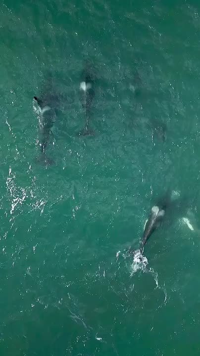 Группа необычайно красивых млекопитающих грациозно проплыла неподалеку от побережья Корсаковского района, будто позируя для кадра.