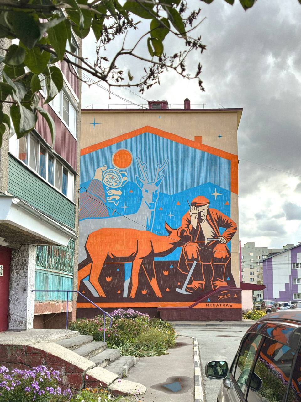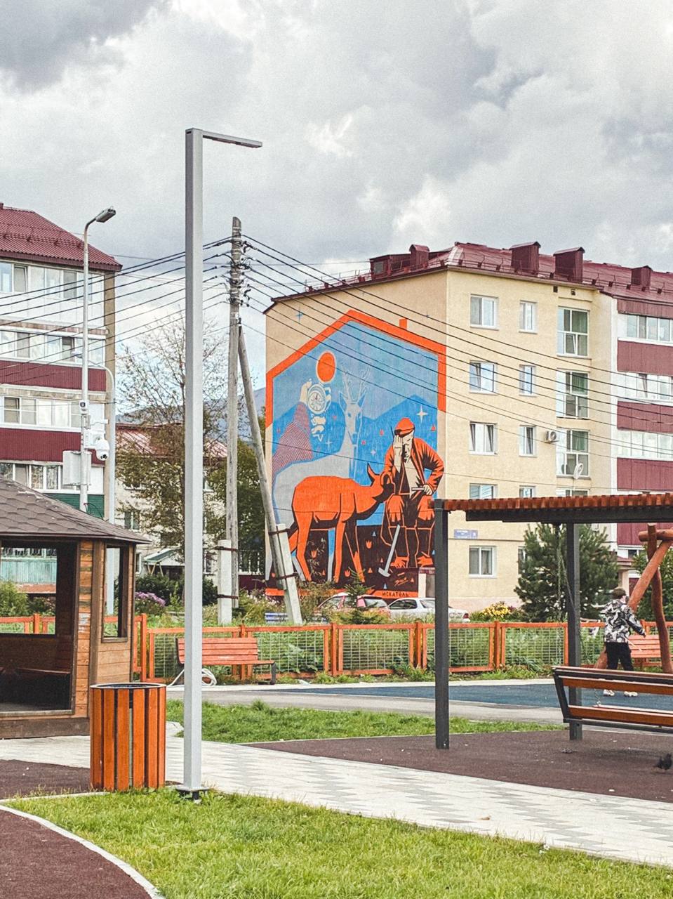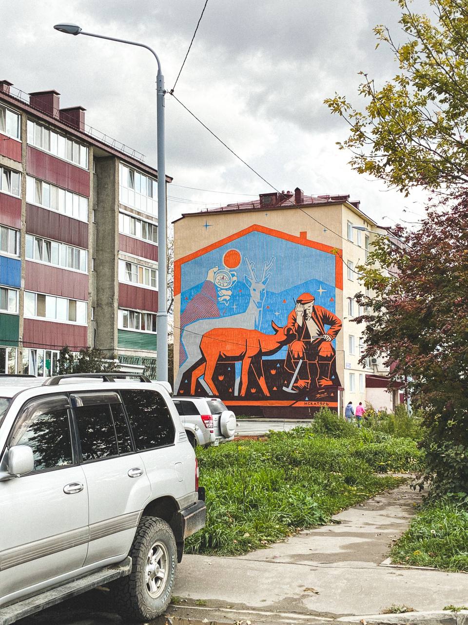 Мурал можно увидеть по адресу: г. Южно-Сахалинск, мкр-н Ново-Александровск, 30 лет Победы, 7А