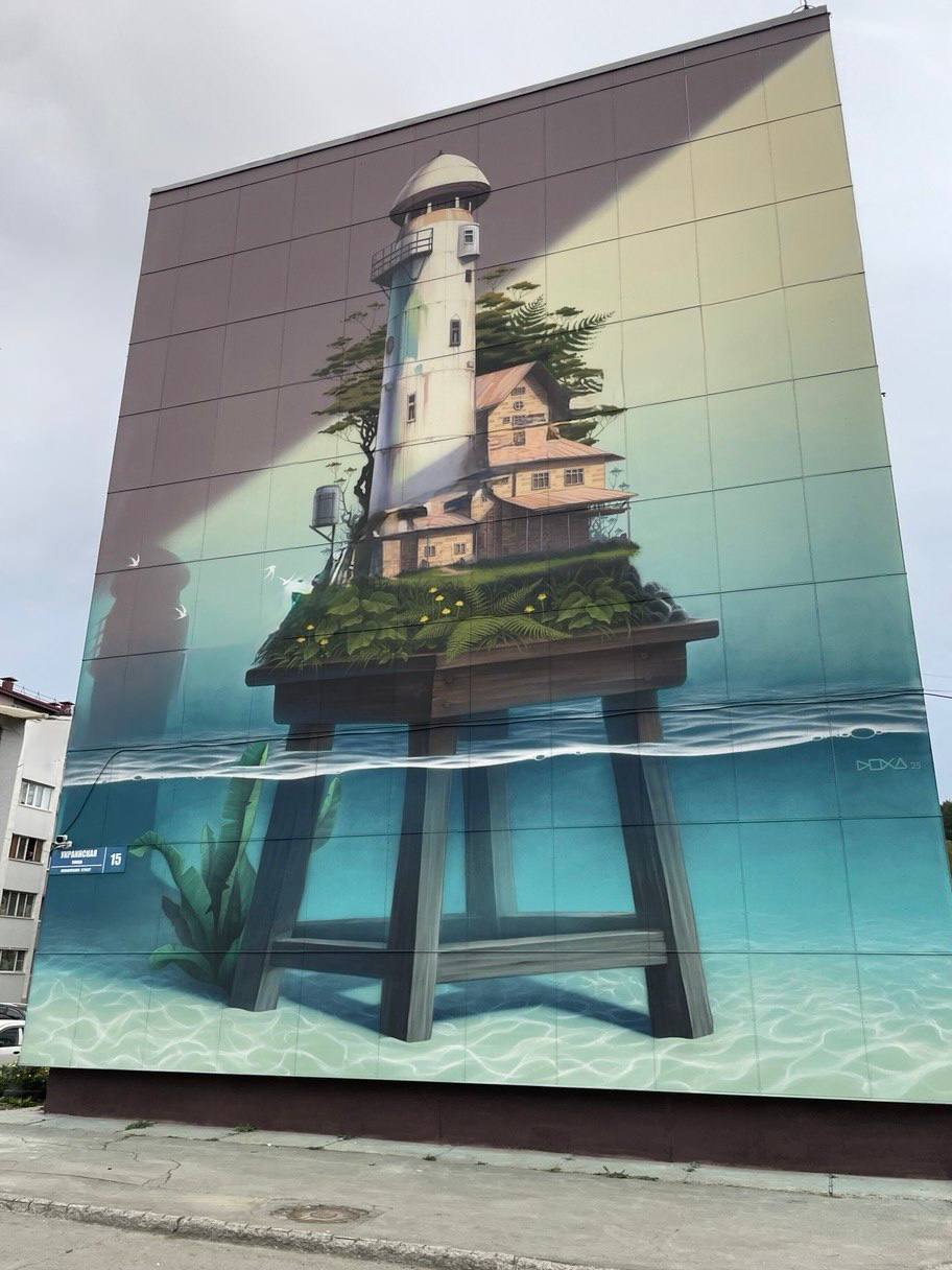 Новые муралы украсили городские фасады Южно-Сахалинска