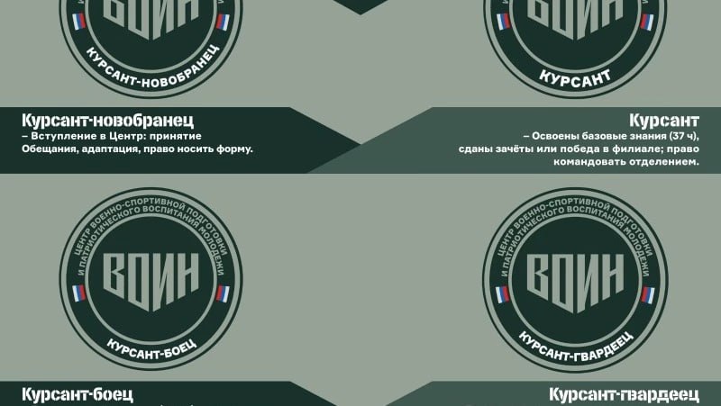 По поручению Юрия Трутнева, заместителя председателя Правительства РФ и председателя Наблюдательного совета Центра «Воин», в этом центре для курсантов 14-17 лет ввели систему из четырех ступеней отличия. Теперь они смогут пройти путь от «Курсанта-новобранца» до «Курсанта-гвардейца».