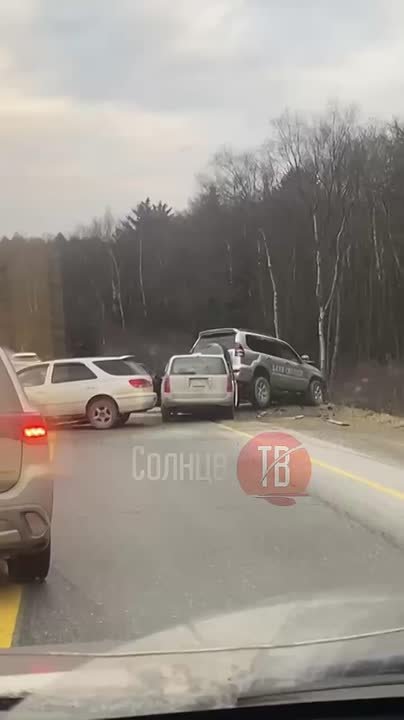 На видео: три автомобиля попали в ДТП — все сильно повреждены.