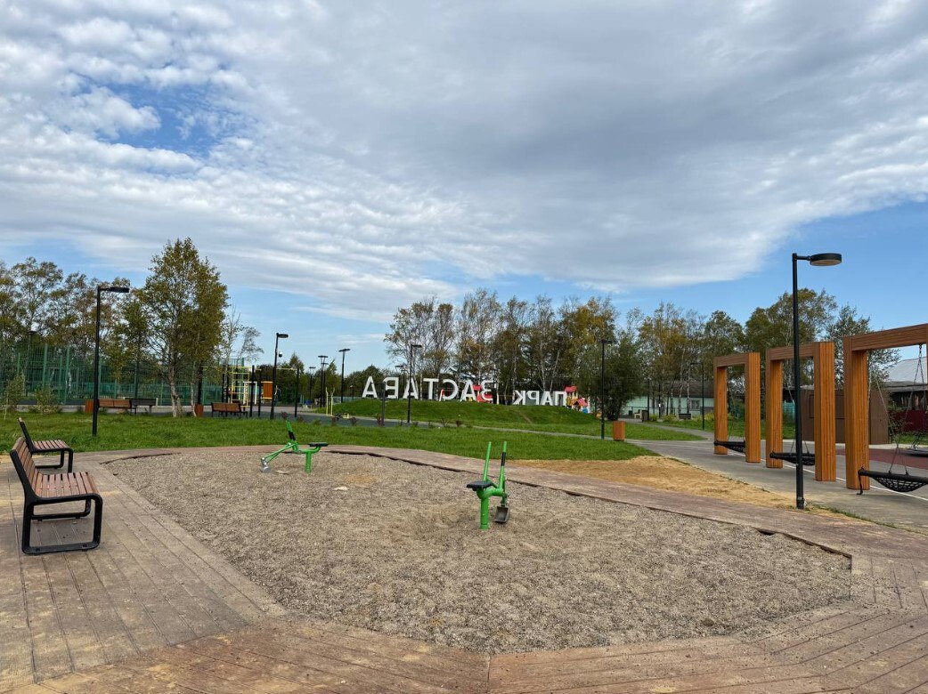 в Ногликах, помимо территории у вокзала, также продолжилось благоустройство парка “Застава”
