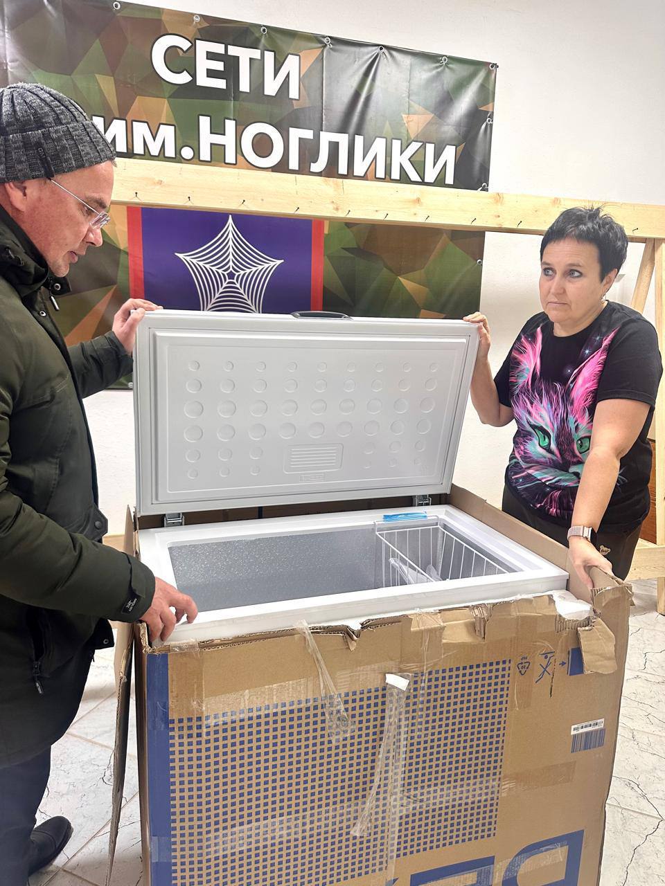 Михаил Бабчук совместно с депутатом Ногликского Собрания Ксенией Решетниковой и директором «Ногликского Дорожника» Рустамом Баратовым приобрел и передал морозильную камеру для нужд волонтеров из инициативной группы «Сети СВОим. Ноглики».