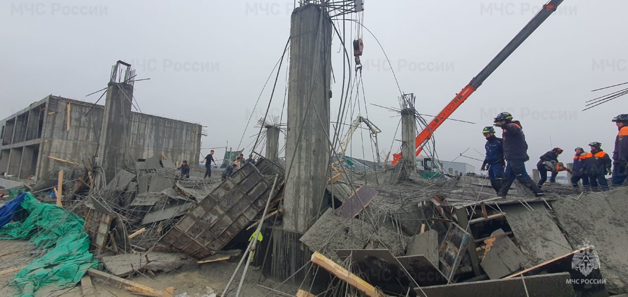 Строящийся двухэтажный ангар рухнул на Сахалине при заливке бетона. Часть здания обрушилась, 3 человека находятся под завалами, сообщили в региональном МЧС. Пострадали 4 строителя, на месте работают 16 спасателей, 5 единиц техники и кинологи.