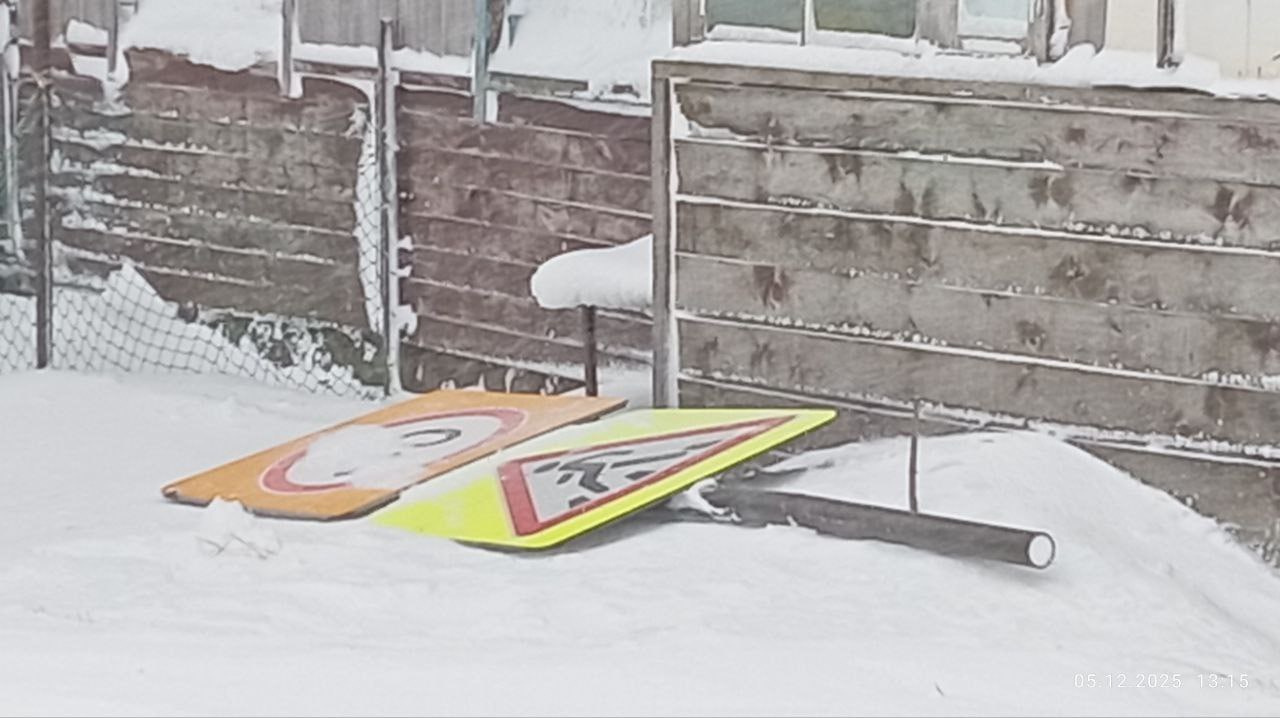 На улицах повалены дорожные знаки, на некоторых домах повреждена кровля. Местных школьников еще с утра перевели на дистанционный формат обучения.