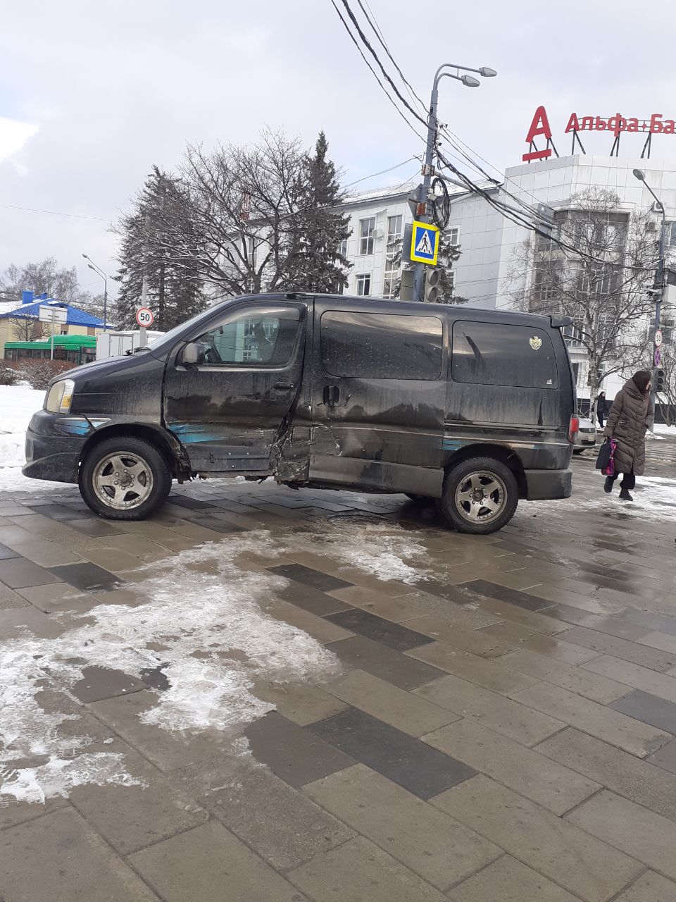 На перекрестке проспектов Коммунистического и Мира около 14 часов дня столкнулись два автомобиля. От удара одну из иномарок вынесло на тротуар.