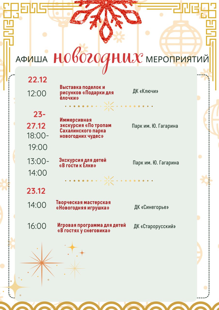 Афишу предновогодних мероприятий опубликовала мэрия Южно-Сахалинска.
