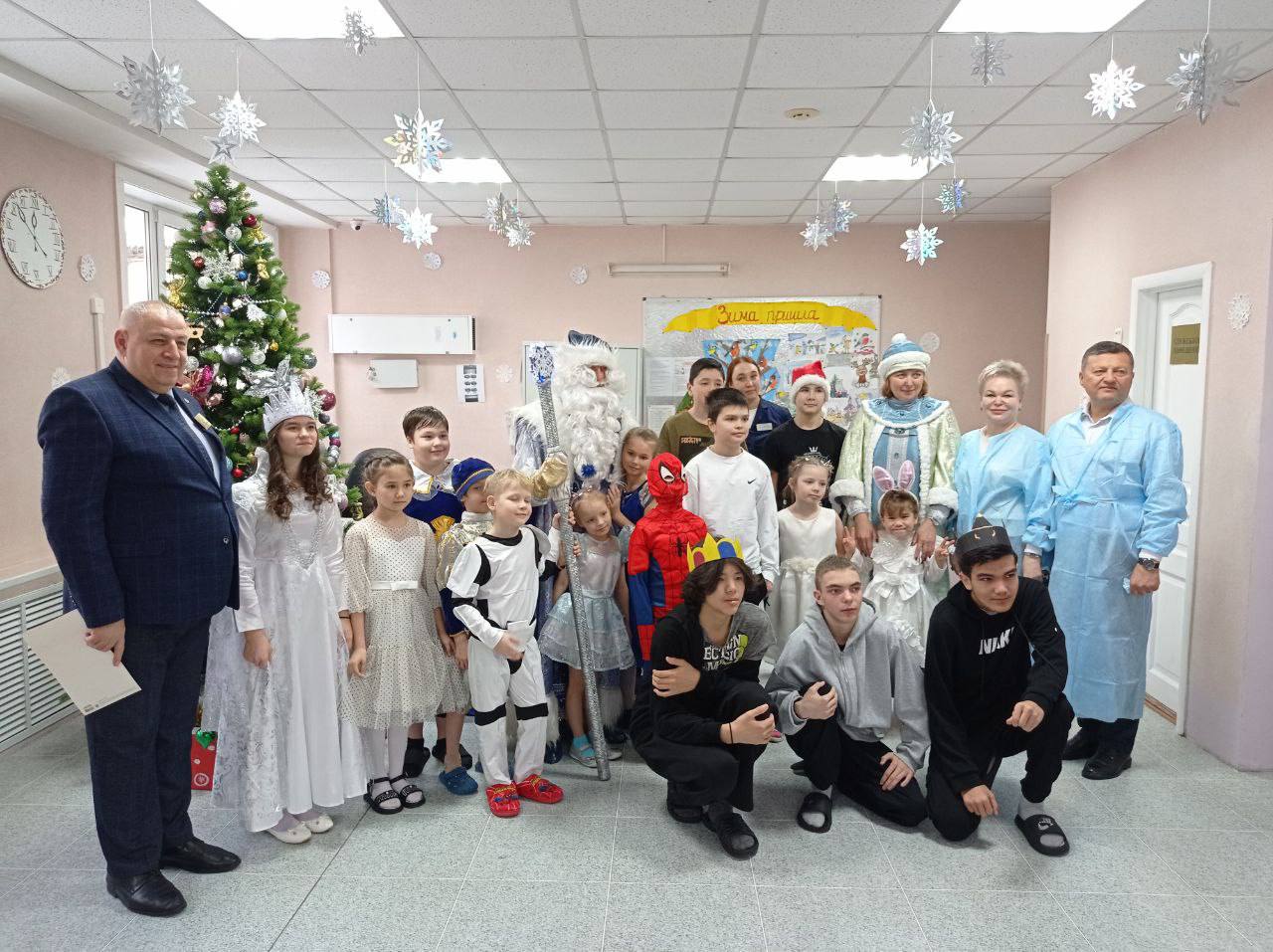 Елена Касьянова, Сергей Бондарев, Николай Артёменко поздравили ребят с наступающим Новым годом и вручили чудесные новогодние подарки. Дети прочитали стихи, водили хороводы, играли с Дедом Морозом и Снегурочкой.