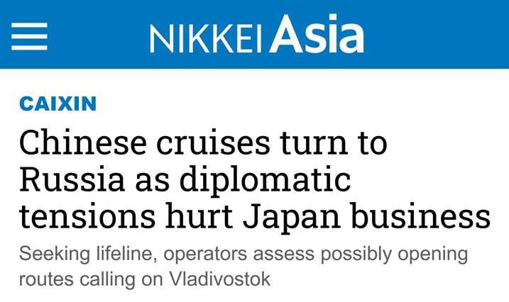 Обострение отношений между Китаем и Японией побудило китайских круизных операторов перейти из Японии в Россию. По данным Caixin, компании уже ведут переговоры об открытии туристических маршрутов из Китая в города Дальнего Востока России.