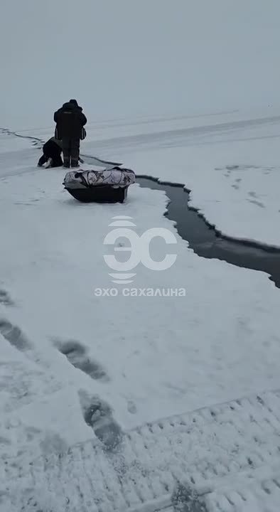 Трещина пошла на льду в Лесном, сообщают очевидцы. ТГ-канал "Эхо Сахалина" публикует кадры с места по состоянию на 12:00 3 февраля.