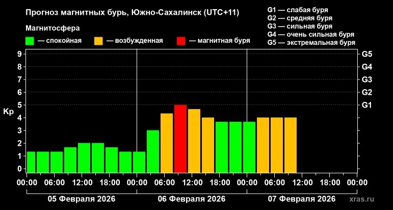 Учёные отметили, что по Земле около двух ночи 5 февраля (по сахалинскому времени) зафиксировали удар плазменного облака от предыдущей вспышки. В ближайшие три дня обстановка на планете будет неспокойной.
