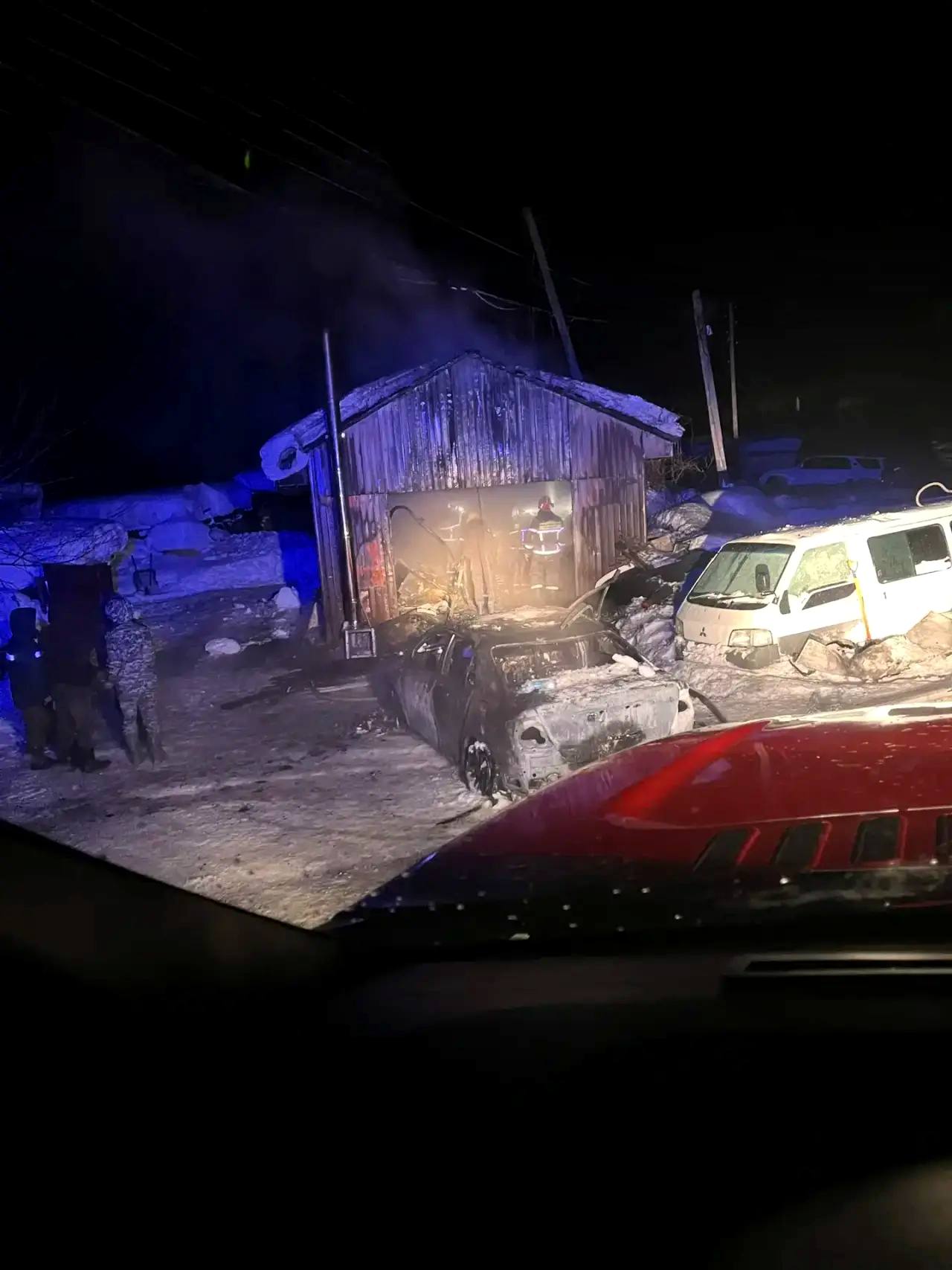 Гараж тушили в селе Подгорное Тымовского района